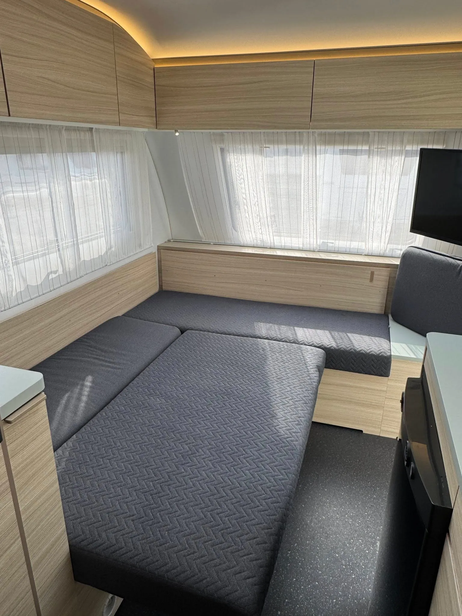 Dobrý den, rádi bychom vám nabídli mladý karavan atypického rozložení s vysokou postelí a velkou garáží a to Adria Altea 472 KP pro 4 osoby.