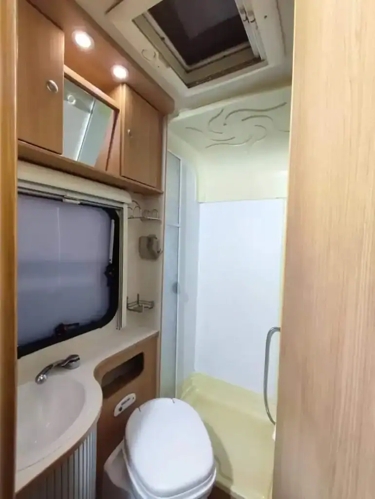 Oddělená sprcha, koupelna s chemickou toaletou,