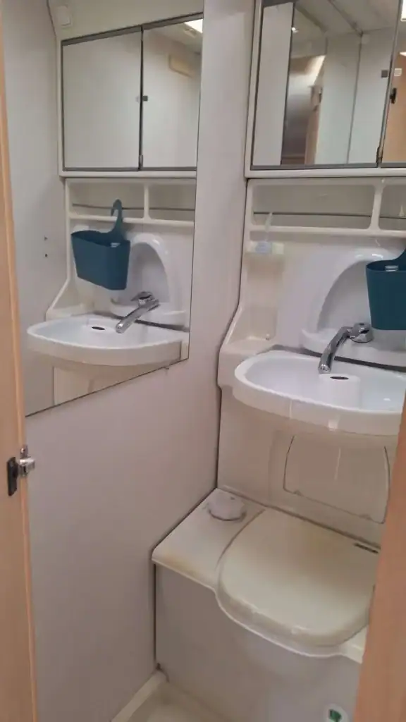 Vpředu je velké sezení, které je možné použít na spaní jako 2 samostatné postele nebo rozložit na spaní pro 3 osoby.
