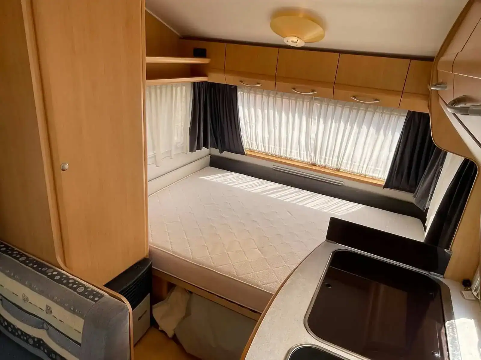V přední části se nachází pevné dvoulůžko.