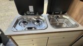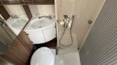 Další příplatková výbava skladového vozu: motor 165 PS, barva Artense Grey, přední nárazník v barvě vozu, LED denní světla, elektronický Drive Control vč. asistenta sjezdu z kopce, topení Truma Combi 4KW E CP Plus, DuoControl CS, držák TV, příprava pro klimatizaci, vyhřívaná odpadní nádrž, venkovní přípojka na vodu, plyn a elektro (220V/12V/SAT), extra boční okno