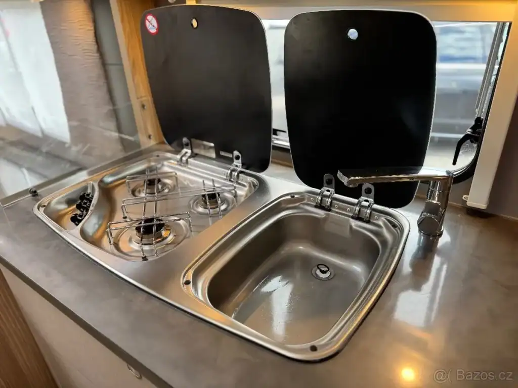 Karavan dodáváme se základní výbavou: schůdky, přípojný kabel, odpadní nádrž, chemie do WC