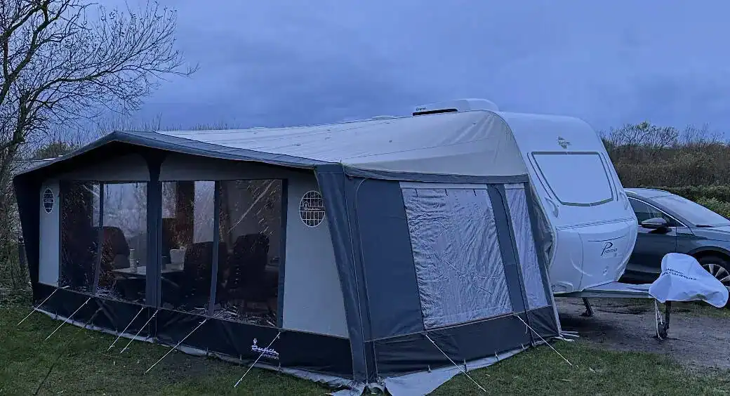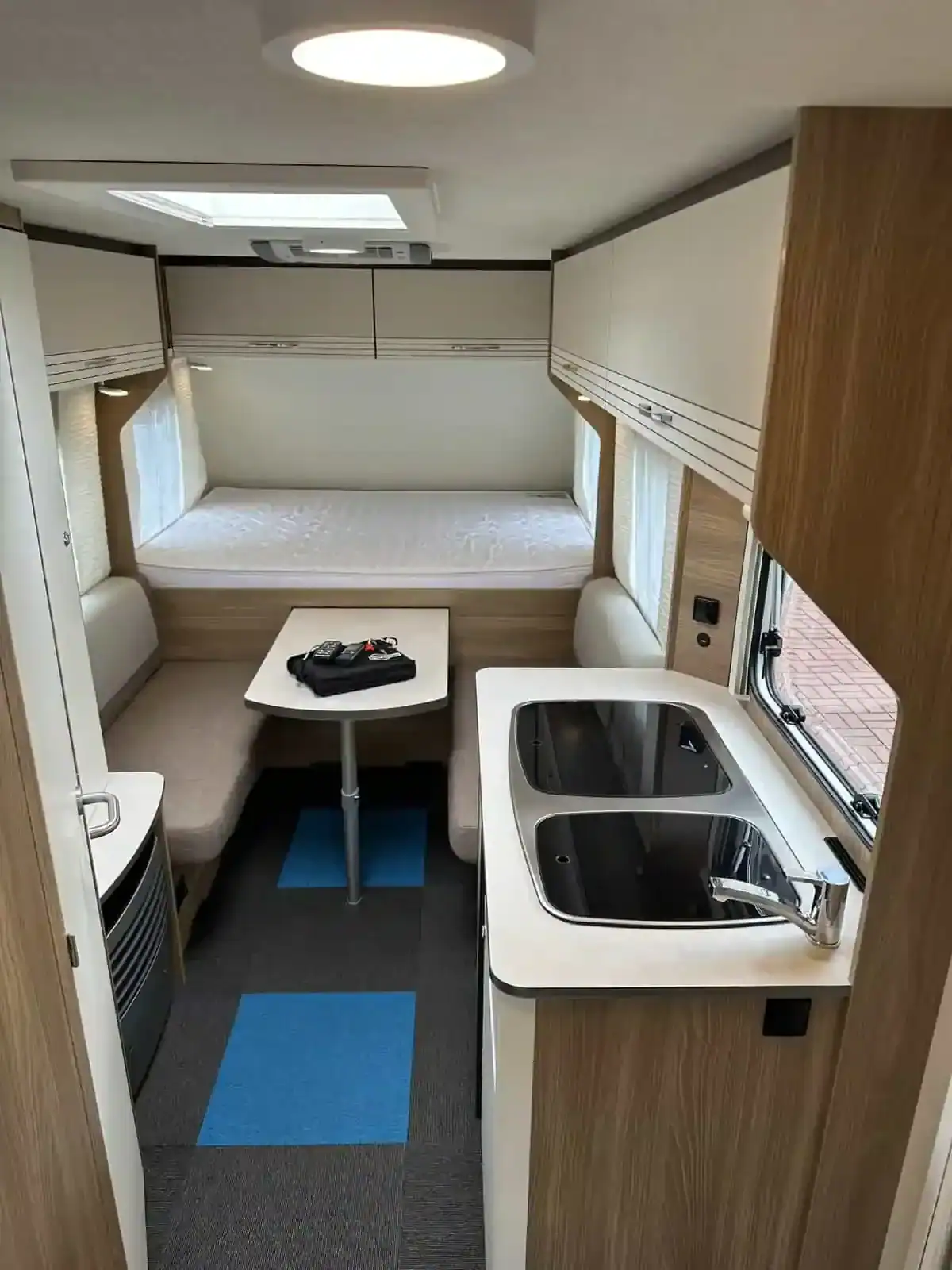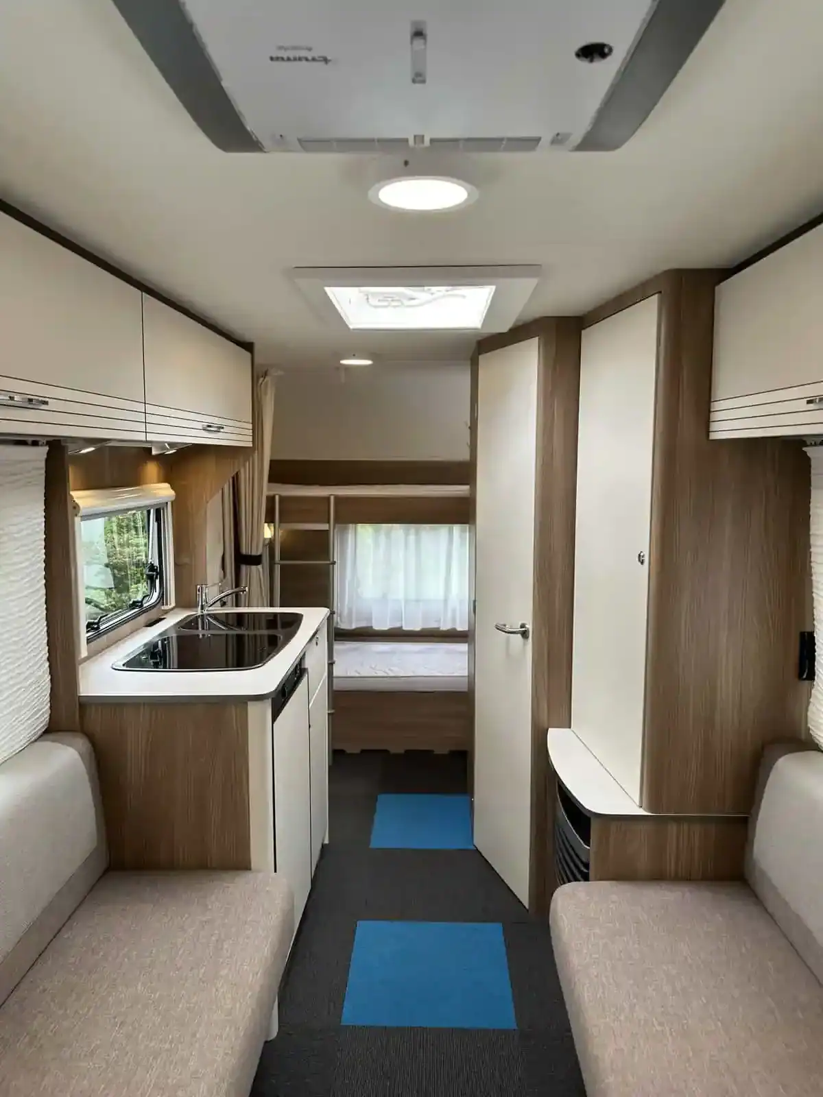 , r.v. 2019, čistý a suchý v nádherném stavu po dvou majitelích. Karavan je velice prostorný a ideální pro rodiny s dětmi. Je vybaven automat el. pojezdy na dálk. ovládání zn. Enduro+baterie+nabíječka, stropní klimatizací Truma Aventa na dálk. ovládání(cladí i topí), el.+plyn topením Truma Ultraheat a GAS alarmem . Pohodlné spaní až pro 6 osob, v přední části je ložnice s velkou vyvýšenou francouzskou postelí. V zadní části jsou dvě dětské palandy přez celou šíři karavanu oddělitelné posuvnou stěnou a přístupné také z venku velkou garáží, v chodbičce je velká šatní skříň, otočné wc s umyvadlem s teplou vodou a zrcadlem, sezení s výsuvným stolkem rozložitelné na spaní pro dvě osoby vedle je kuchyňský nerezový dřez s teplou vodou se skleněným krytem, trojhořák se skleněným krytem, lednice Dometic s mrazákem (230/12V/plyn), plynové+el. topení Truma Ultraheat s rozvodem po celém karavanu, el. bojler Truma 5l, nádrž na vodu (45L), všechna okna jsou dvojitá včetně sítěk a termo rolet, velké střešní okno také se síťkou a termo roletou(nad kychyní)+střešní okno v koupelně, dělené vstupní dveře se sítí proti hmuzu v celé výšce, veškeré osvětlení je LED, alu kola, spousta úložného prostoru, spousta zásuvek, každou zimu parkováno v garáži, kompletní kabeláž vč. dlouhé prodlužky, schůdky, venkovní el.+anténí zásuvka, plast kryt oje, přídavná zrcátka na auto, super doložnost 500kg !, test vlhkosti a plynu ve 4/2025. Kompletně uzavíratelný předstan Isabella Commodore North o hloubce 3m s uhlíkovou kontrukcí vč. krytů kol a podlahy. Druhý předstan Isabella Sun Shine Plus 2,5m s lehkou uhlíkovou konstrukcí. Nájezdová brzda se stabilizátorem, 2 klíče. Váha 995/1500kg, povolená max rychlost je 100km/h. Vše je odzkoušeno a plně funkční-při prohlídce Vám vše předvedeme a se vším Vás seznámíme. Karavan má pro Vás novou STK a je připraven na kempování. Povinné ručení na rok zdarma. Více info Vám rád sdělím po tel. 605001575/608549599 a možno poslat více foto na Váš email.