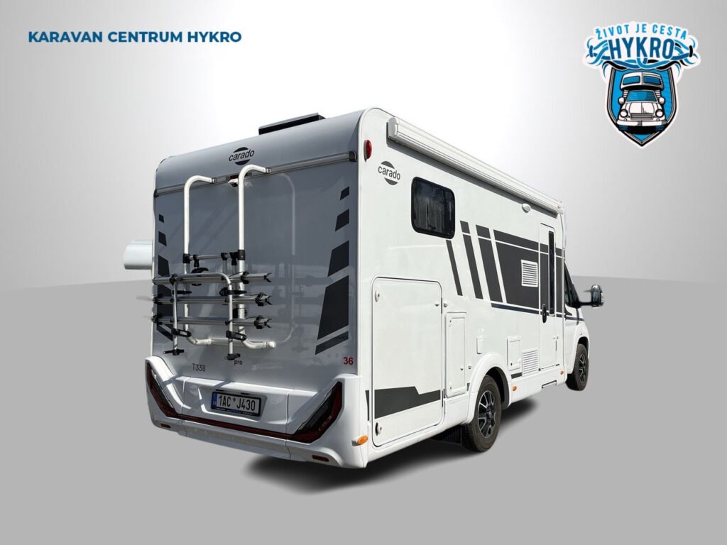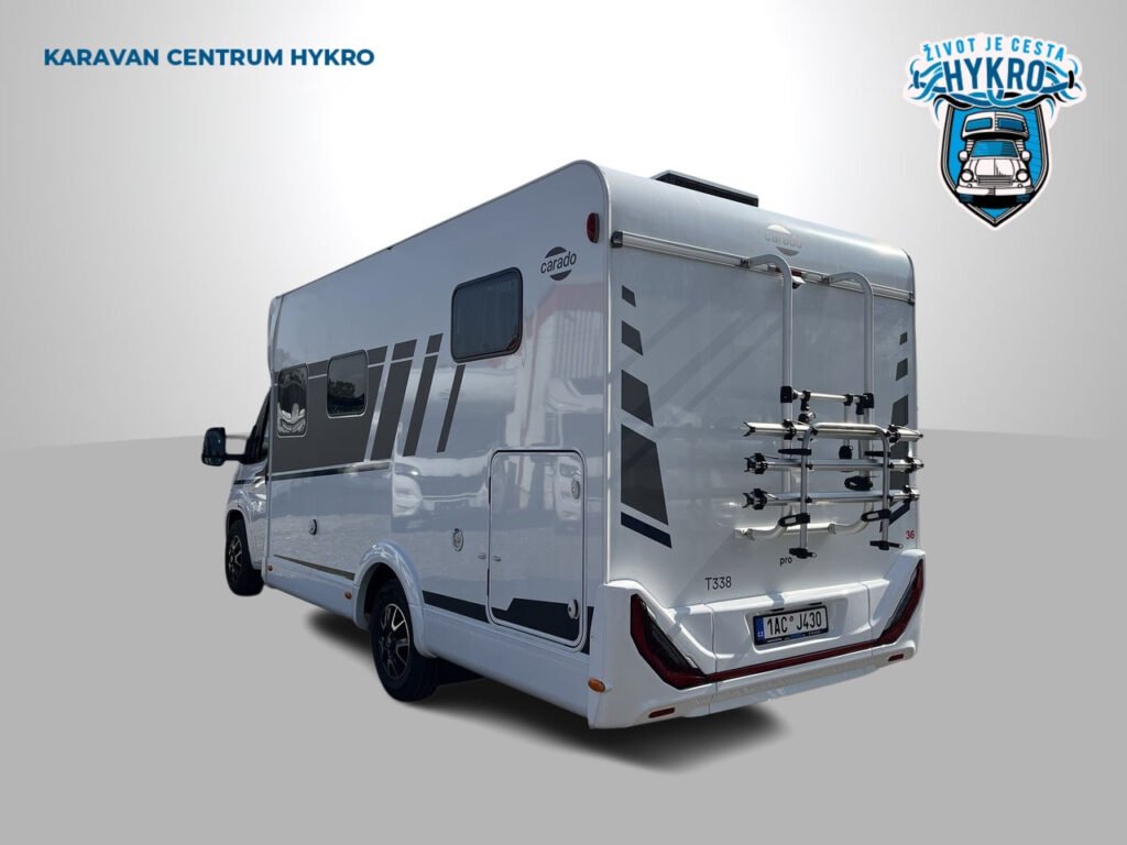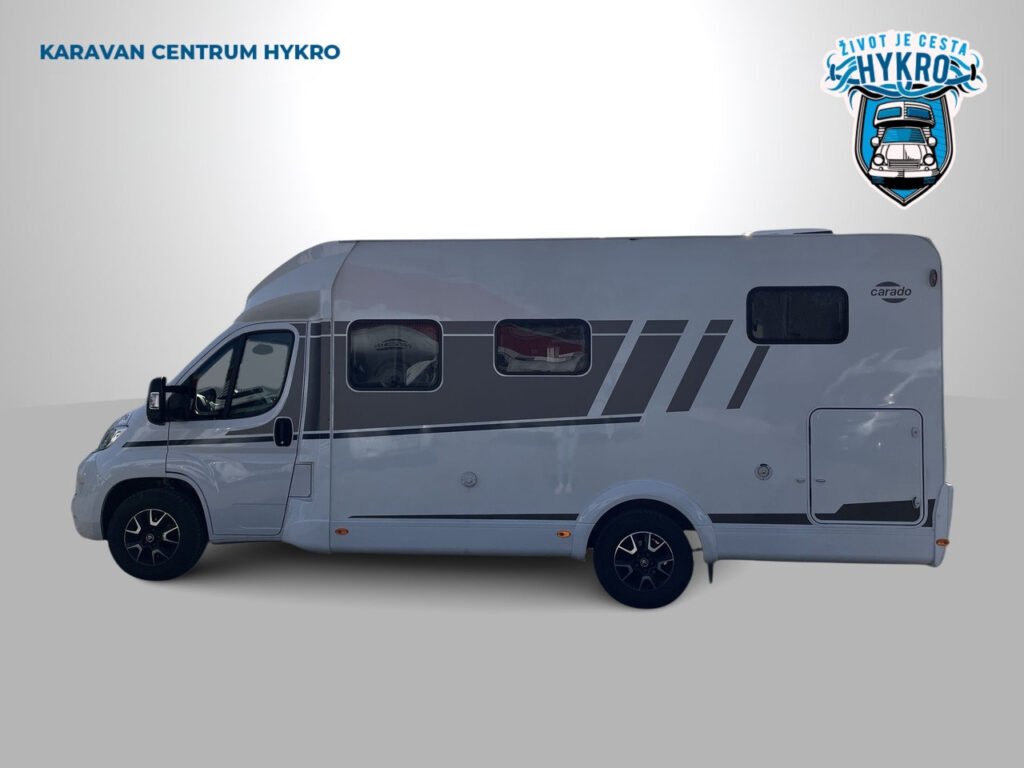 Zánovní rodinný polointegrovaný obytný vůz Carado T338 na podvozku Citroën Jumper pro 4 osoby na jízdu i na spaní v oblíbeném půdorysu. Silnější motor 165 PS! Ve skvělém stavu po prvním majiteli. Datum první registrace 5.3.2024, nájezd 64 587 km.