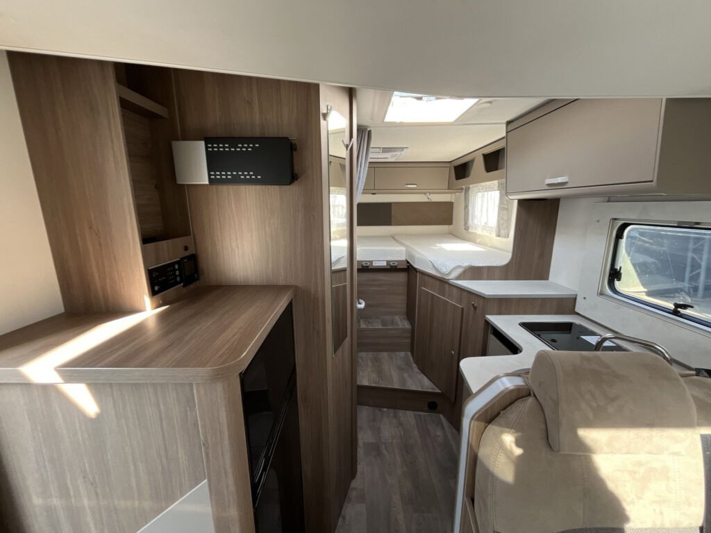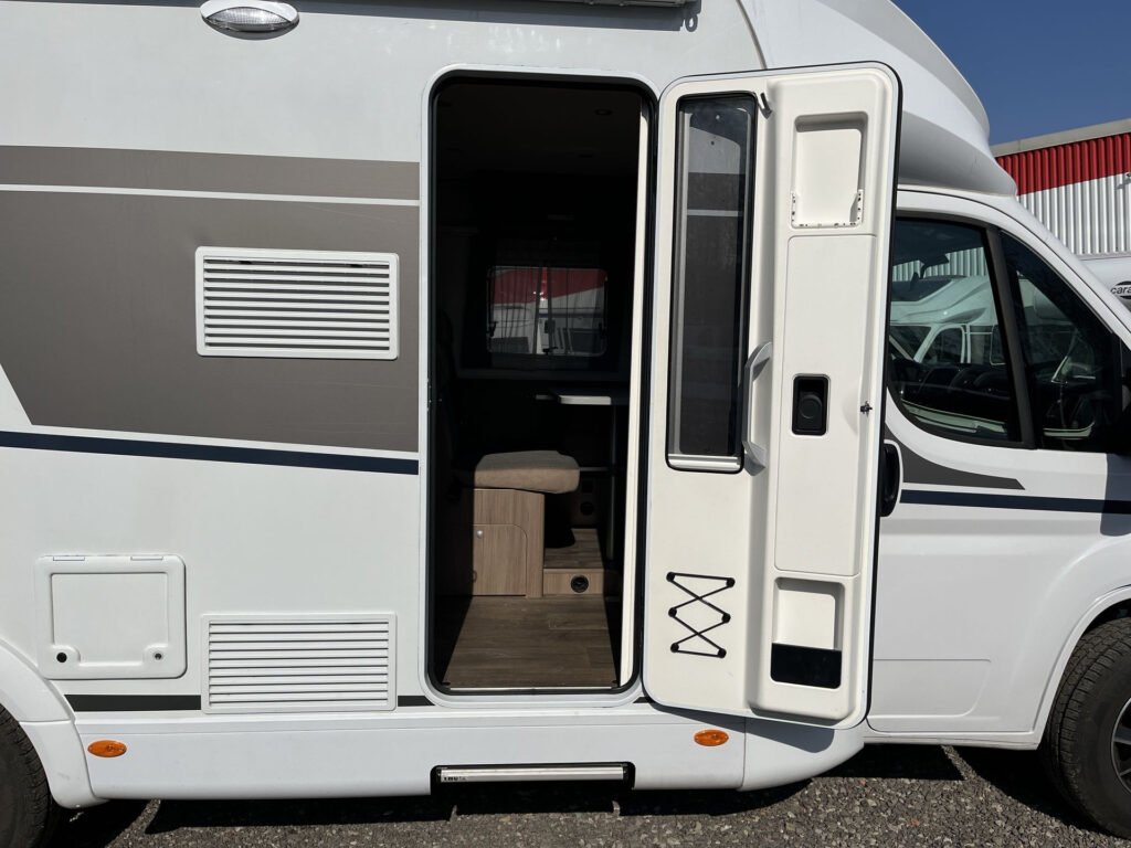 PRO CI paket: Levé dveře garáže (80×85 cm), izolace odpadní nádrže, velká lednice 167 l s odděleným mrazákem, remis žaluzie v kabině řidiče, střešní okno nad kabinou řidiče