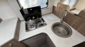 Standardní výbava: Přední otočná sedadla Captain Chair, airbag řidiče a spolujezdce, motorová klimatizace manuální, tónovaná a elektricky ovládaná okna v kabině řidiče, centrální zamykání dveří v kabině řidiče, palubní počítač s ukazatelem vnější teploty, DAB anténa ve zpětném zrcátku, držák na telefon / tablet vč. USB zásuvky, dojezdová sada pro pneu Fix & Go Kit, příprava rádia vč. 4 reproduktorů, přední nárazník v barvě vozidla, 7 let záruka na těsnost nástavby, střecha a zadní stěna odolná proti krupobití, polohovatelná dvojitá boční okna s roletou a sítí proti hmyzu, prostorná garáž se zatížením 150 kg, elektrický vstupní schůdek, LED osvětlení interiéru a exteriéru, výkonná baterie AGM 95 Ah pro obytnou část, kontrolní panel nástavby, vnitřní zásuvky 230V, vnější připojení pro 230V s jističem, USB zásuvka, centrální osvětlení u vstupních dveří, plynové topení Combi 6 s integrovaným 10 l bojlerem, kuchyňská deska s nerezovým dřezem a skleněným krytem, tříhořákový vařič s pojistkou hoření a se skleněným krytem, LED osvětlení nad kuchyňskou linkou, pákové mísící baterie v kuchyni i koupelně, nádrž čisté vody vč. bojleru 122 litrů, odpadní nádrž 92 litrů, WC s elektrickým splachováním, skříňka se zrcadlem, integrované LED osvětlení, střešní okno s ochrannou síťkou, ergonomicky tvarované sedáky, komfortní matrace s odnímatelnými potahy na všech lůžkách, laťový rošt na pevných lůžkách, Isofix pro 2 sedačky.