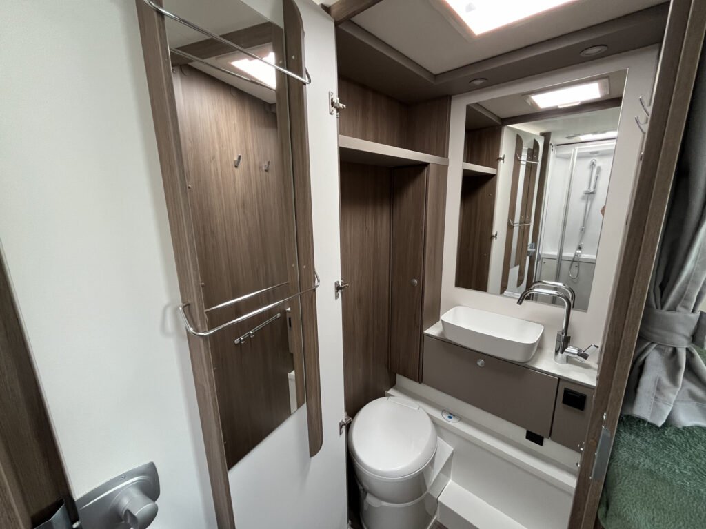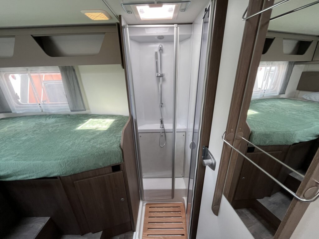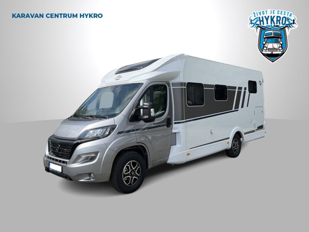 Standardní výbava: Přední otočná sedadla Captain Chair, airbag řidiče a spolujezdce, motorová klimatizace manuální, tónovaná a elektricky ovládaná okna v kabině řidiče, centrální zamykání dveří v kabině řidiče, palubní počítač s ukazatelem vnější teploty, DAB anténa ve zpětném zrcátku, držák na telefon / tablet vč. USB zásuvky, dojezdová sada pro pneu Fix & Go Kit, příprava rádia vč. 4 reproduktorů, přední nárazník v barvě vozidla, 7 let záruka na těsnost nástavby, střecha a zadní stěna odolná proti krupobití, polohovatelná dvojitá boční okna s roletou a sítí proti hmyzu, prostorná garáž se zatížením 150 kg, elektrický vstupní schůdek, LED osvětlení interiéru a exteriéru, výkonná baterie AGM 95 Ah pro obytnou část, kontrolní panel nástavby, vnitřní zásuvky 230V, vnější připojení pro 230V s jističem, USB zásuvka, centrální osvětlení u vstupních dveří, plynové topení Combi 6 s integrovaným 10 l bojlerem, kuchyňská deska s nerezovým dřezem a skleněným krytem, tříhořákový vařič s pojistkou hoření a se skleněným krytem, LED osvětlení nad kuchyňskou linkou, pákové mísící baterie v kuchyni i koupelně, nádrž čisté vody vč. bojleru 122 litrů, odpadní nádrž 92 litrů, WC s elektrickým splachováním, skříňka se zrcadlem, integrované LED osvětlení, střešní okno s ochrannou síťkou, ergonomicky tvarované sedáky, komfortní matrace s odnímatelnými potahy na všech lůžkách, laťový rošt na pevných lůžkách, Isofix pro 2 sedačky.