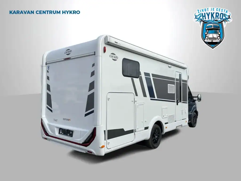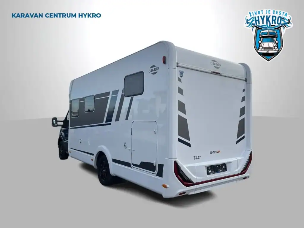Komfort: Izolovaná odpadní nádrž, velká lednice (156 l) s odděleným mrazákem, zatemňovací žaluzie v kabině.