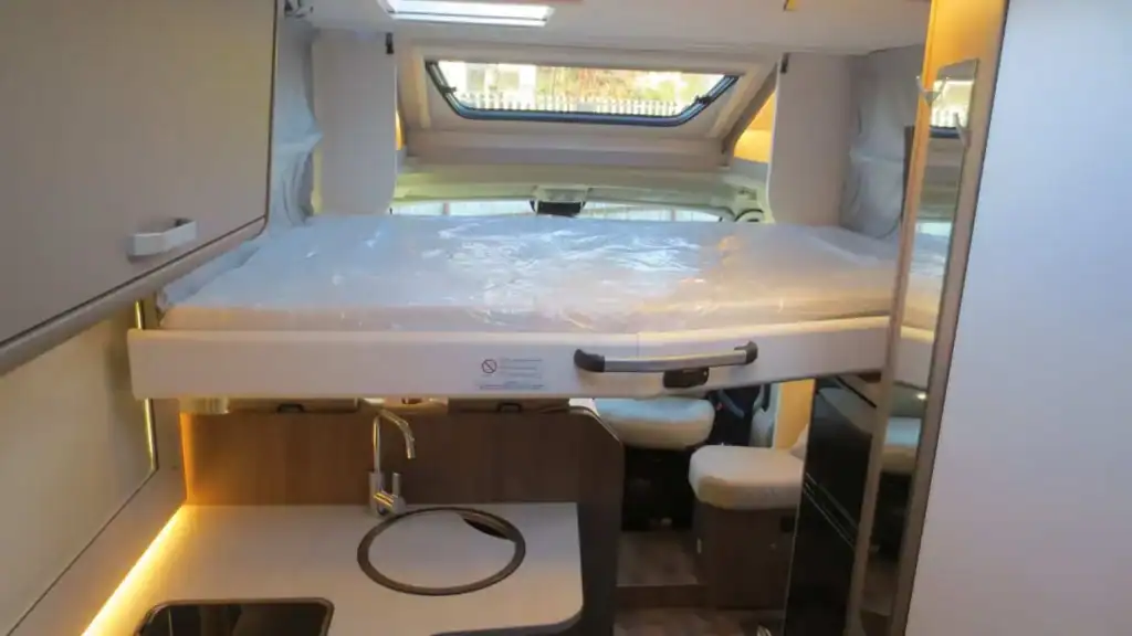 * Markýza, TV + automatický satelit, 2DIN autorádio s multikonektivitou, motorová automatická klimatizace, integrované rolety v kabině, otočné pilotní sedačky, multifunkční volant, hlídání jízdních pruhů, kontrola…
