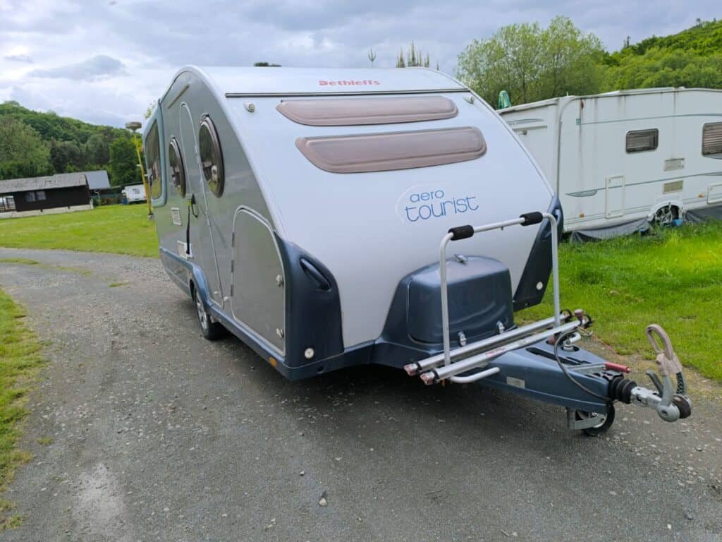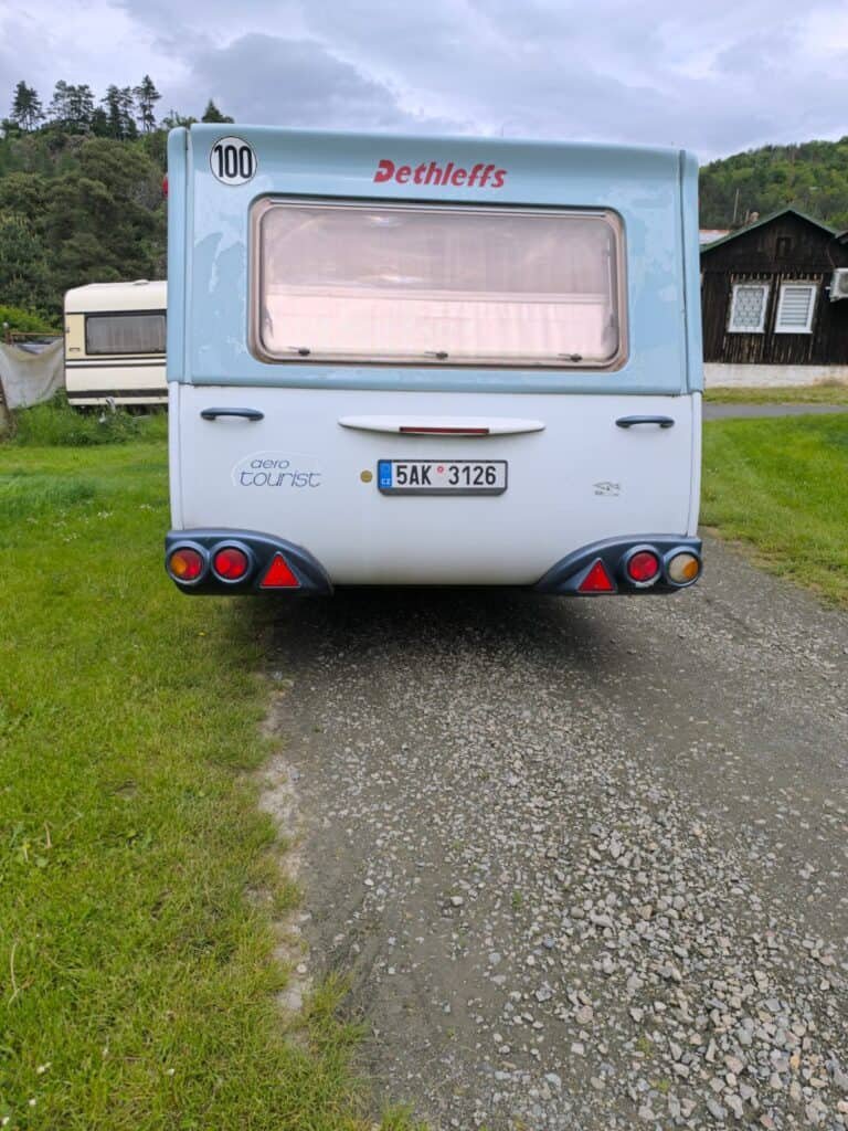 Nabízíme k prodeji karavan Dethleffs Aero Tourist, r.v. 2009 – celková hmotnost 1500kg – délka – 669cm – šířka 230cm – výška 260cm. V přední části je zvýšené lůžko pro 2 osoby, v zadní části je rozkládací sezení se stolem s možností rozložení na další lůžko. Pod předním lůžkem je prostorná garáž přístupná z obou stran. V koupelně je umístěné chemické WC, umyvadlo a otočná zástěna pro vytvoření sprchového koutu. Kuchyň je vybavena 3 plotýnkovým plynovým vařičem, nerezovým dřezem a absorbční lednicí. Topení Trumatic, bojler Truma TT.  Nádrž na vodu cca 40litrů + odpadní nádrž pod karavanem. Další vybavení: automatický mover, strěšní ventilátor s DO, nosič kol na oji, venkovní plynová přípojka, venkovní přípojka 12V / USB / 230V, solární panel, trakční baterie, měnič napětí 500W, venkovní LED osvětlení, rezerva vč. držku pod karavanem. Karavan je energeticky soběstačný, připravený na nová dobrodružství.