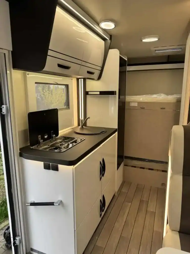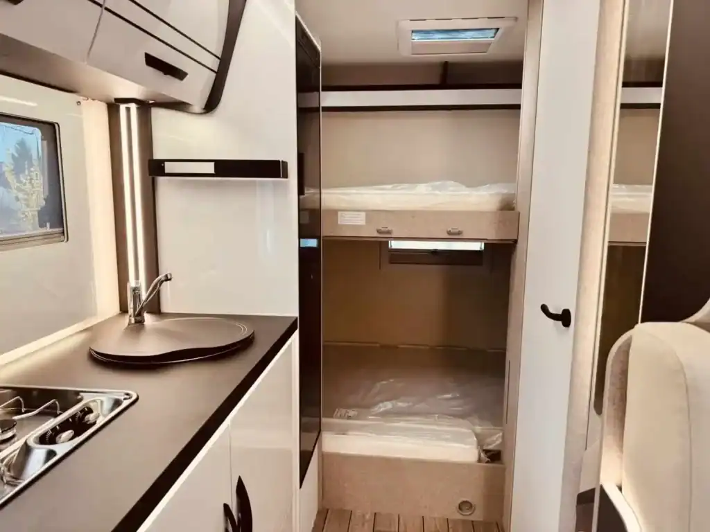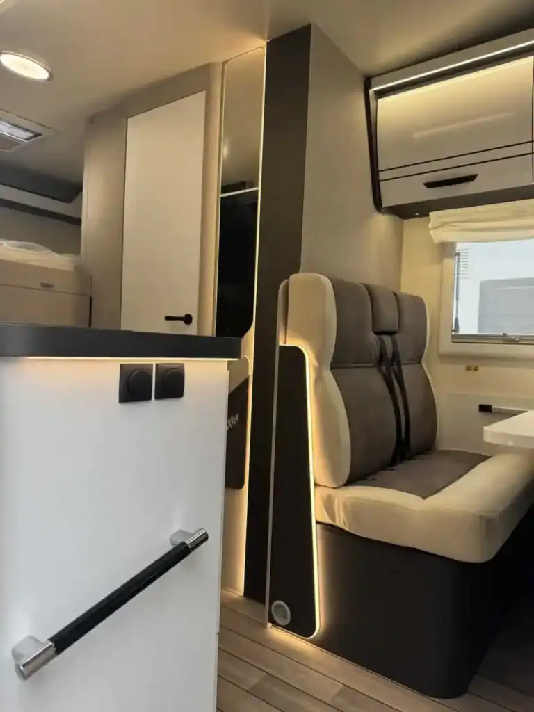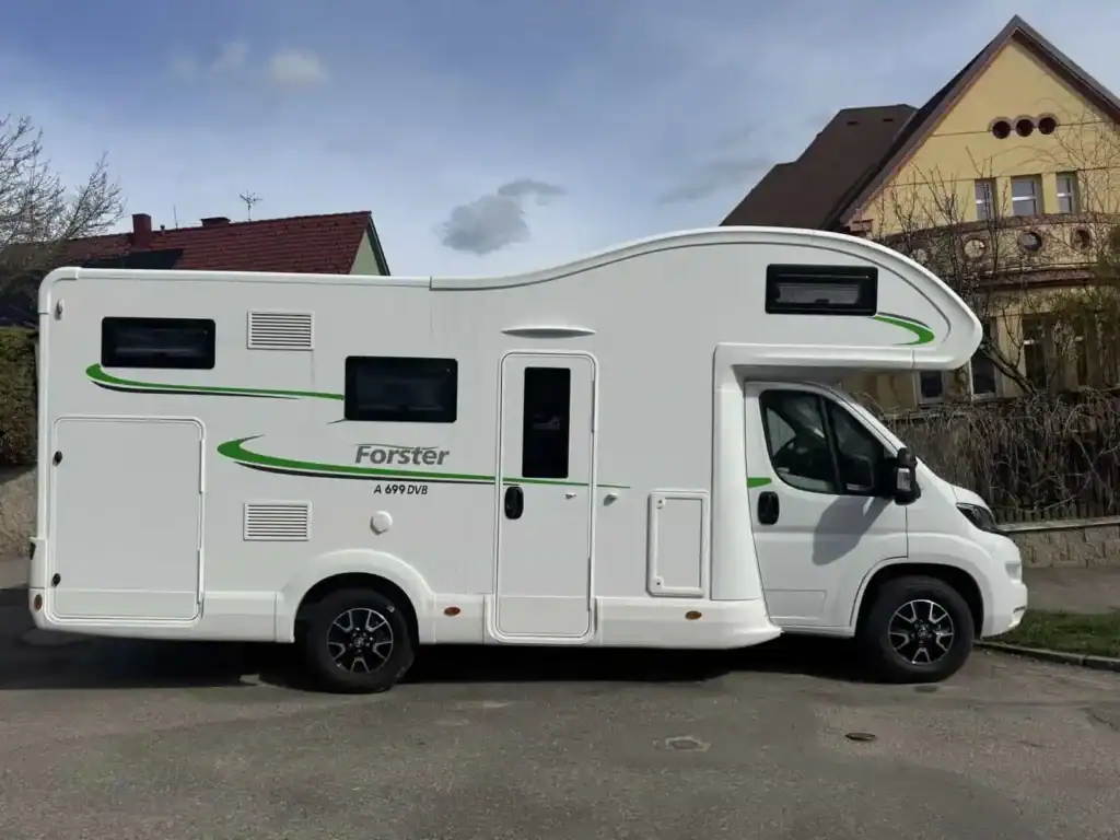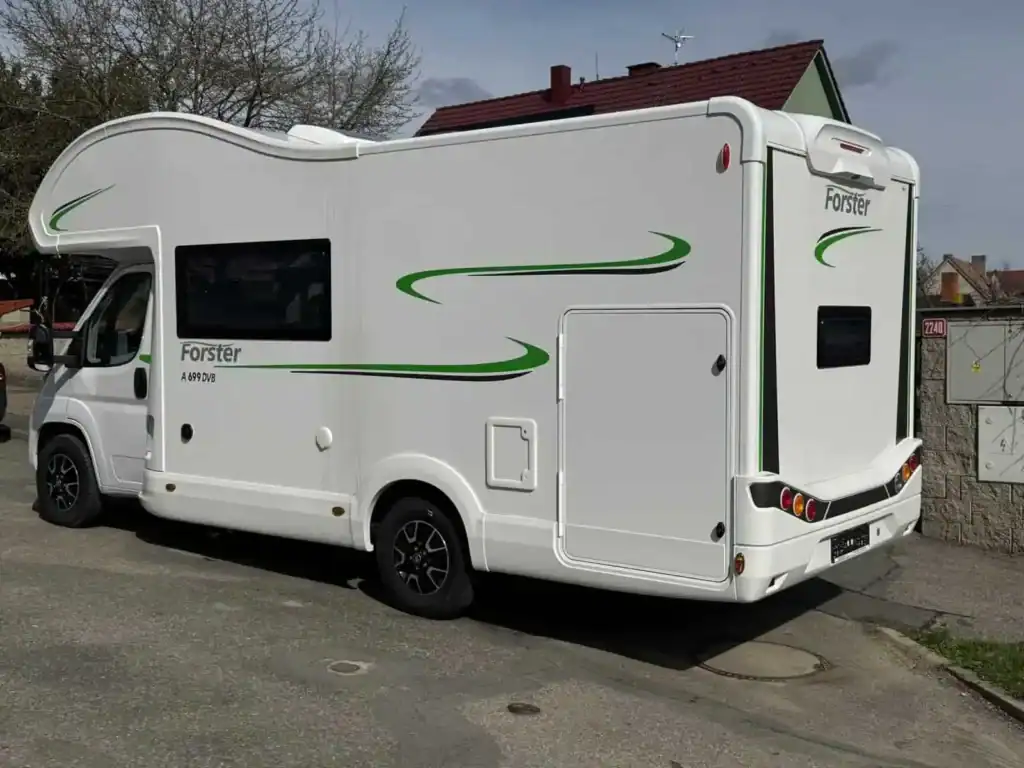 Obytný automobil Forster A 699 DVB  s Travel Line Paket, v provedení Alkovna. Kapacita pro 6 cestujících jízda / a až 8 lůžek !!! Prostorný, prakticky zařízený obytňák, v zadní části s příčně umístěnými dvojlůžky nad sebou.