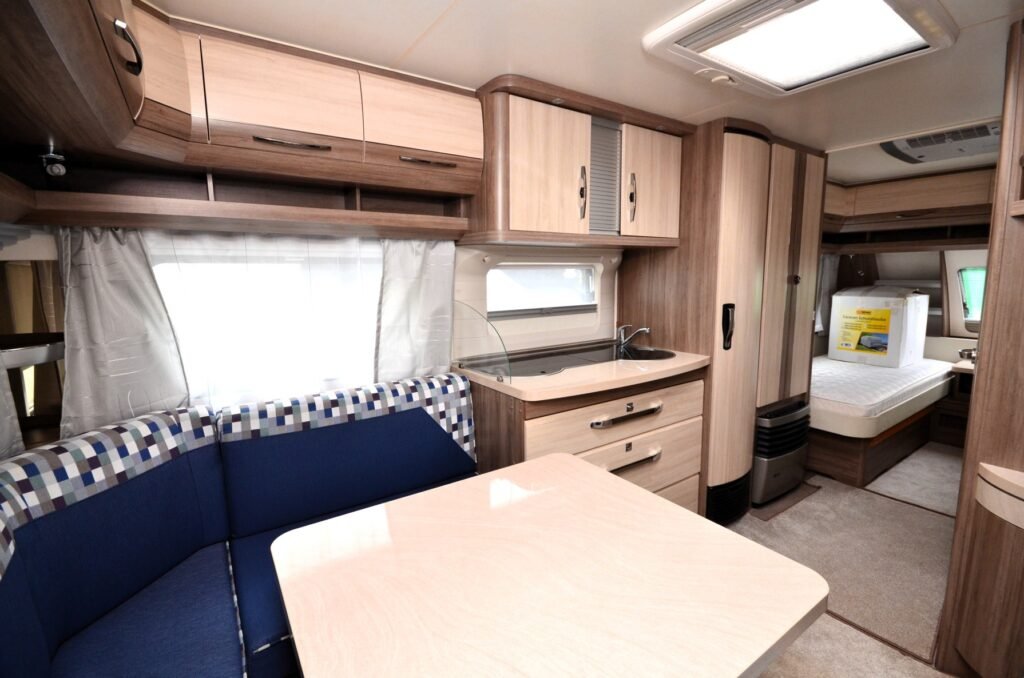 Topení na plyn, rozvody a rozfuk vzduchu, ohřev vody na 230V, sítě proti hmyzu na oknech, termorolety na oknech, síť proti hmyzu ve dveřích, 12V ovládací panel, vnitřní nádrž na užitkovou vodu, venkovní dvířka k úložnému prostoru, střešní klimatizace, mover, střešní markýza, krycí plachta, vyjímatelné koberce, nově čalouněná sedací souprava, držák TV, stabilizátor.