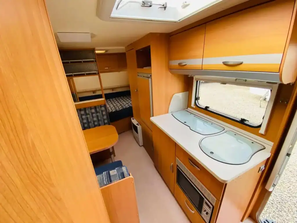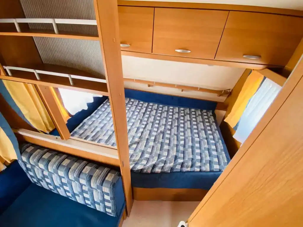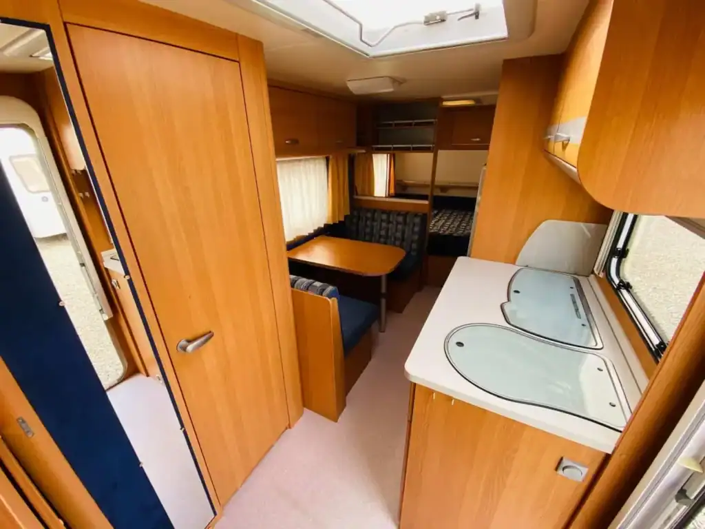 – rok 2007 – hmotnost 1200/1400kg – délka 728cm – šířka 230cm – pro 5-6osob – francouzká postel (196x140cm), rozkládací sezení (196x96cm) a palandy (186x77cm) – sáčková markýza – lednice 12/230/plyn – el. rozvod 12/230V – tří plotýnkový vařič – mikrovlnná trouba – držák na TV – rychlost 100 Km/h – plynové topení Truma s rozfukem – el. bojler Truma – chemické WC – sprchová vanička -(jednoduchá montáž sprchy) – dvojitá okna s termoroletami a sítěmi proti hmyzu i ve vchodových dveřích – stabilizátor – držák vepředu na 2 jízdní kola – držák vzadu na 3 jízdní kola – rezerva – alu kola – střešní okna -dovoz NL -v ceně je zahrnuta dovozová STK – možnost montáže příslušenství (solárů, moverů, plyn. bojlerů a mnoho dalšího) – při prodeji odzkoušení a příprava v našem servisu v ceně – karavan je k vidění v Bransouzích u Třebíče, prohlídka možná kdykoliv. Před návštěvou si prosím zavolejte na tel.724 787 488 nebo 724 396 361. Všechny nabízené karavany máme skladem