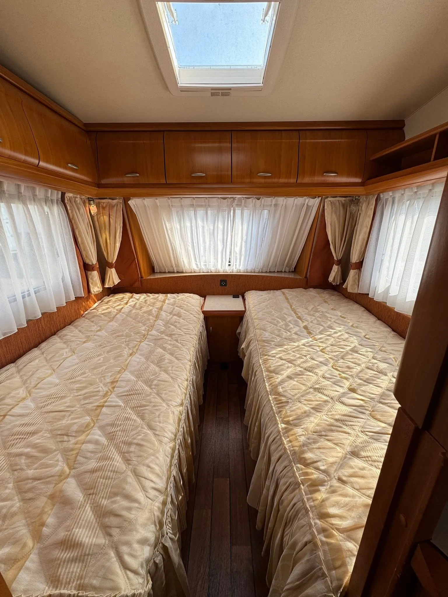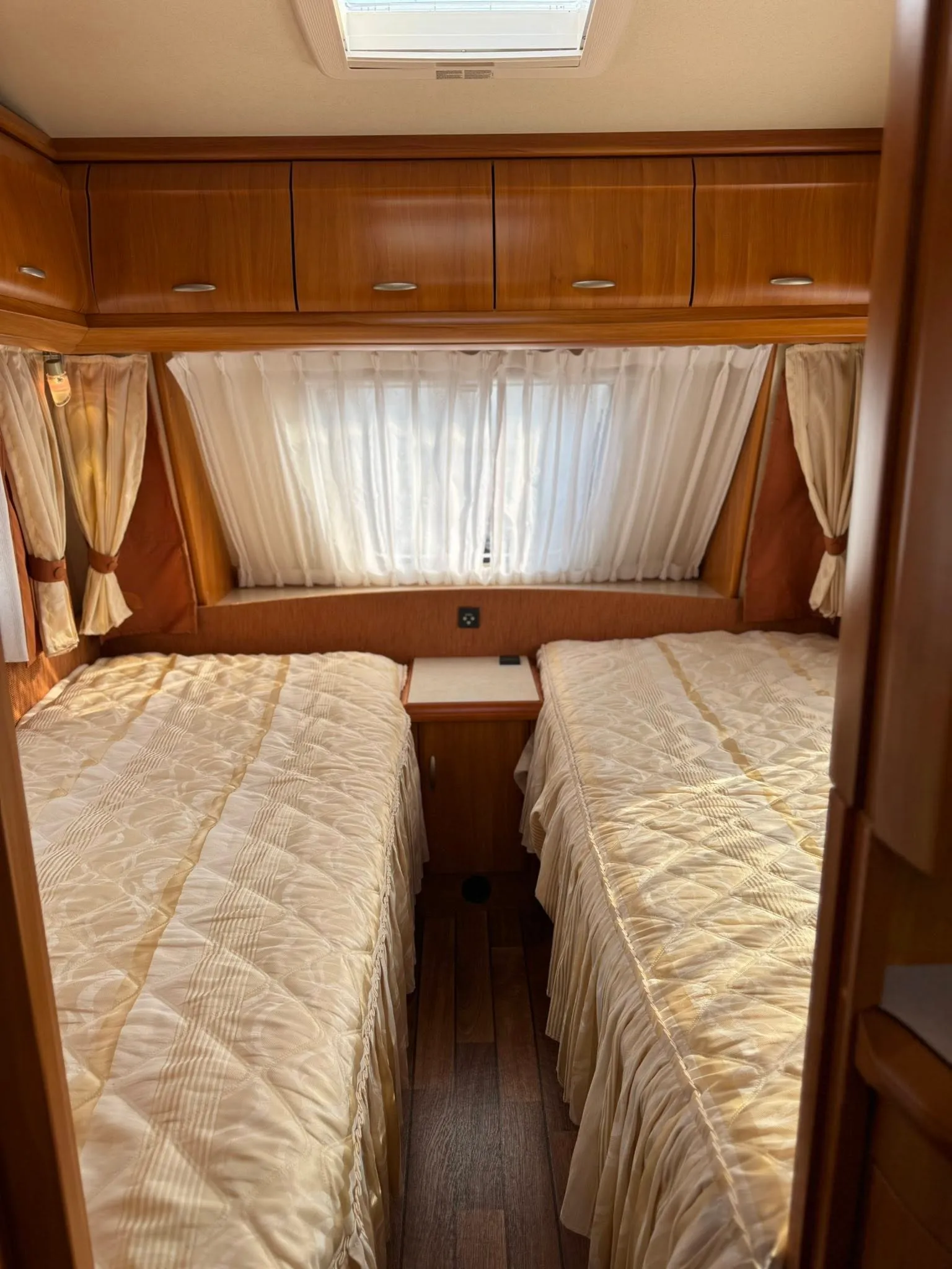 Dobrý den, rádi bychom vám nabídli oblíbeně řešený karavan s dělenými postelemi od známé značky Hobby Excellent 495 UL pro 4 osoby.