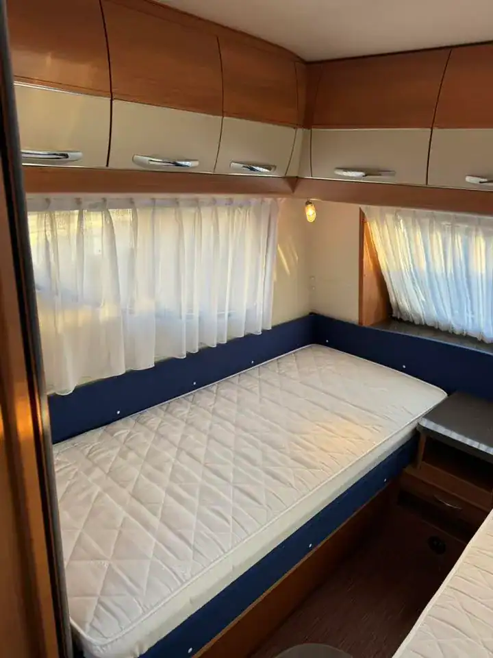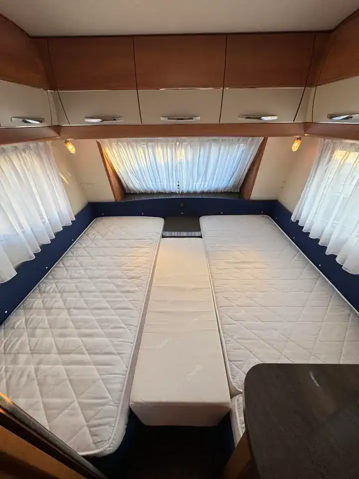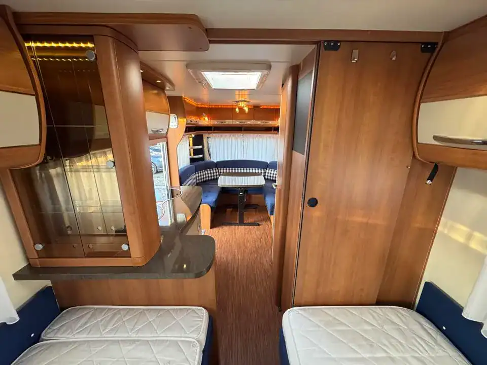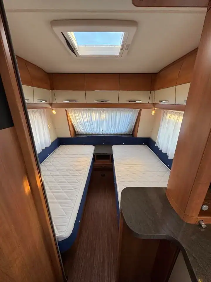 ideální pro 4–5 osob. Tento model vyniká dělenými postelemi, kvalitním zpracováním a bohatou výbavou, díky které je vhodný jak pro víkendové výlety, tak pro delší cestování.