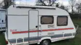 Karavan má rolovací markýzu, velký předstan, držák na 2 kola na oji, solární systém, měnič napětí, je zcela nezávislý na el.přípojce, velká nádrž na vodu, sklopný schod, nástupní madlo, 2 palandy, rozkládací dvojlůžko,lednice trojkombinace,odpadní nádrž, technické údaje viz foto, další info mailem nebo tel.