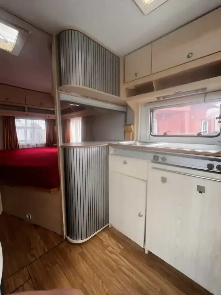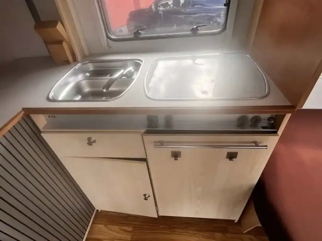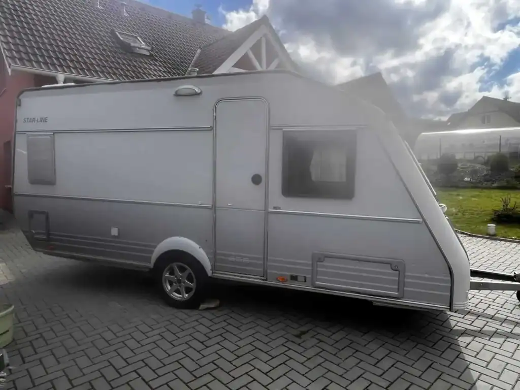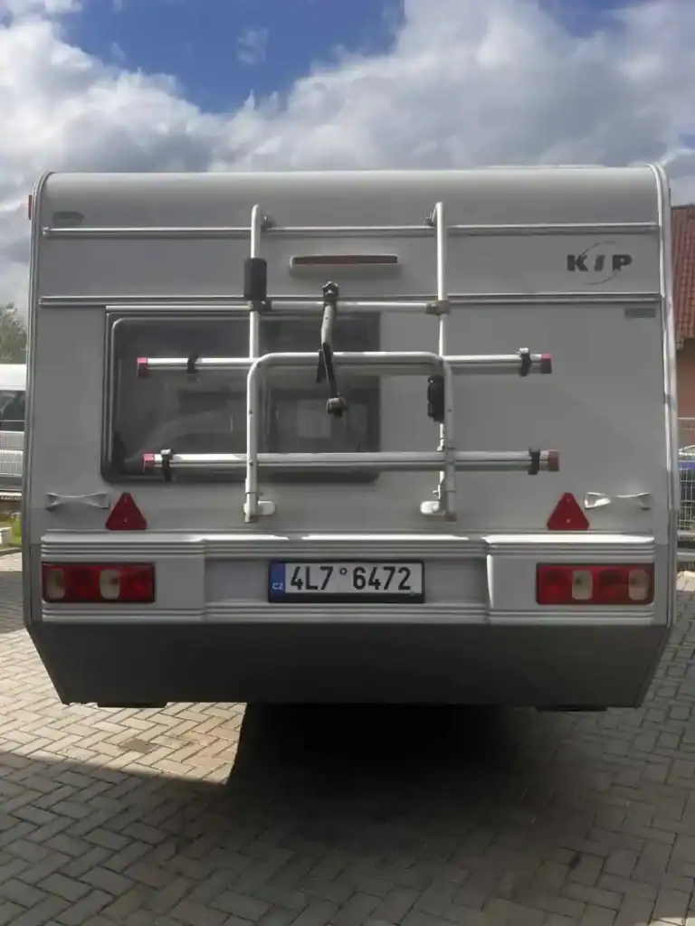 Karavan čistý, udržovaný, nezateklý, zvenku drobné promačklinky, pravá zadní strana má opravený 10cm šlic.