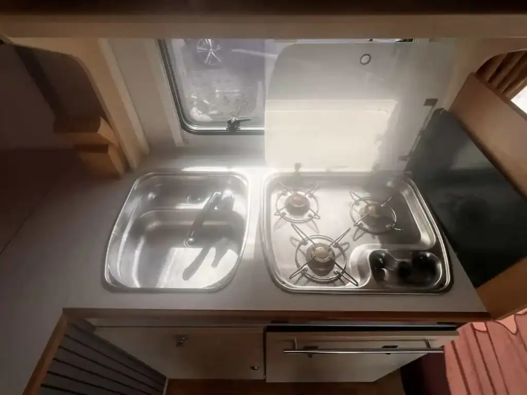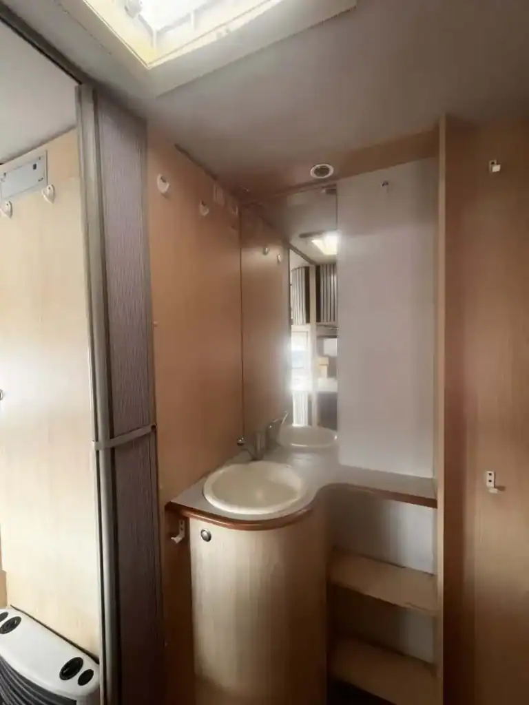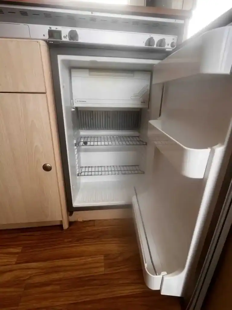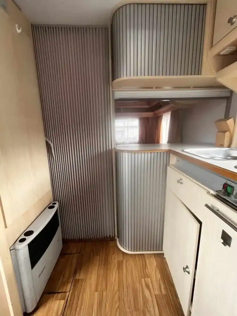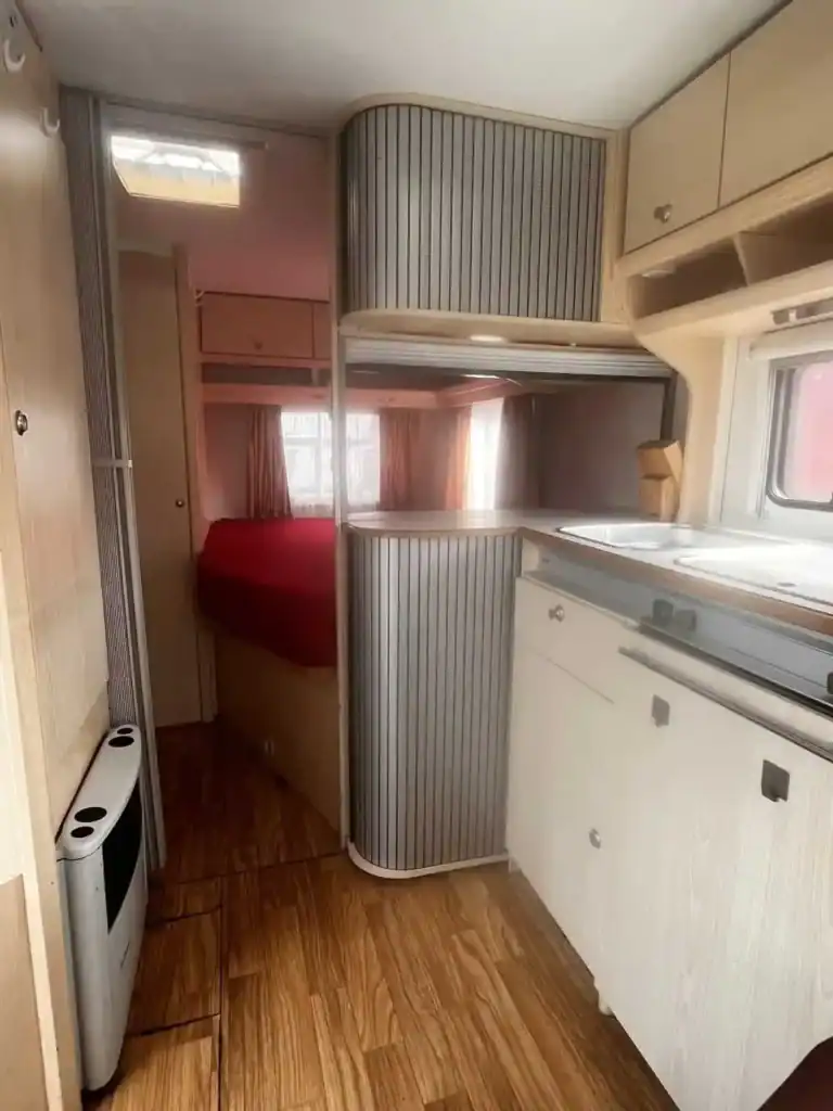 Karavan čistý, udržovaný, nezateklý, zvenku drobné promačklinky, pravá zadní strana má opravený 10cm šlic.