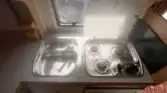 Karavan čistý, udržovaný, nezateklý, zvenku drobné promačklinky, pravá zadní strana má opravený 10cm šlic.