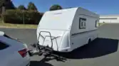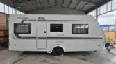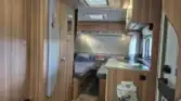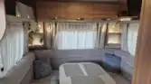 Prostorný karavan s francouzským lůžkem vpředu a rozkládacím „“U““ sezením vzadu. Výsuvný rošt mezi samostatnými lůžky (rozšíření lůžka vč. matrací)
