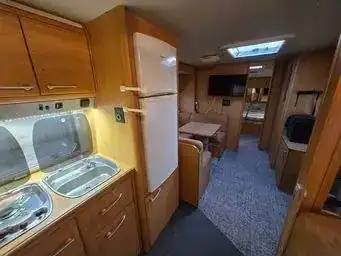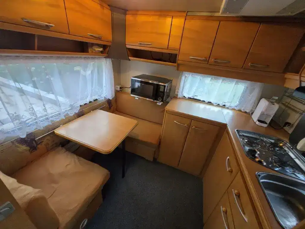Unikátní velký karavan 10,5m s ojí, dvouosý, s extra vychytávkou vysouvacím bokem, pro 5-6 osob. Ložnice s velkou manželskou postelí oddělená pevnými dveřmi, koupelna s umyvadlem a kazetovým WC, samostatná sprcha (!), obývací pokoj s posezením do U pro 4 a rozložením na spaní pro 2 + samostatné houpací křeslo, další sezení pro 2 se stolem a spaním pro 1, velká kuchyň do L s dřezem a 3-plotynkou, horkovzdušná mikrovlnka. Stropní klimatizace, solární panel na…