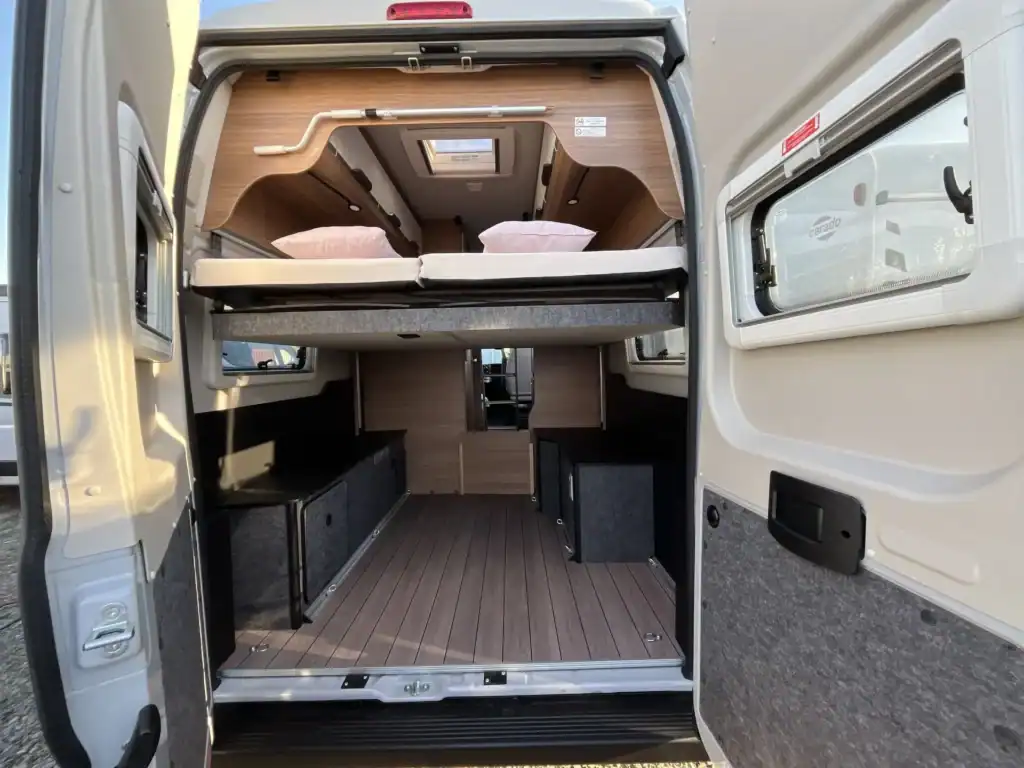 nabízíme k prodeji novou obytnou vestavbu Knaus BoxLife 630 ME, modelový rok 2025. Tato delší verze (636 cm) je vybavena praktickými podélnými lůžky a nabízí komfortní cestování a spaní pro 4 osoby.