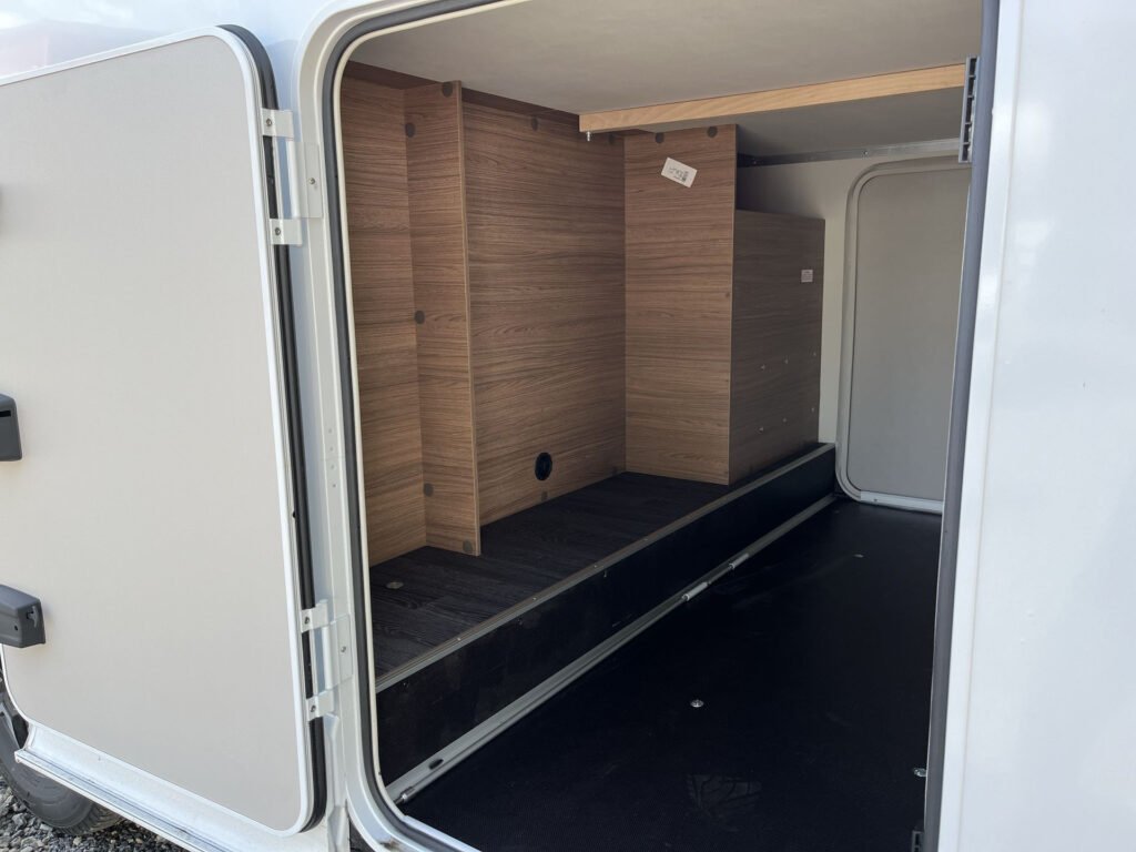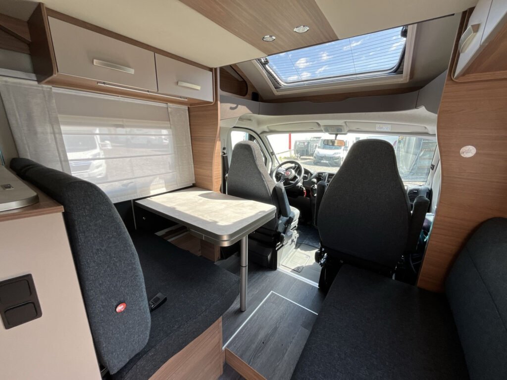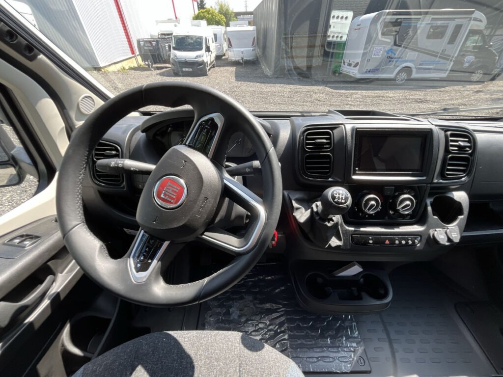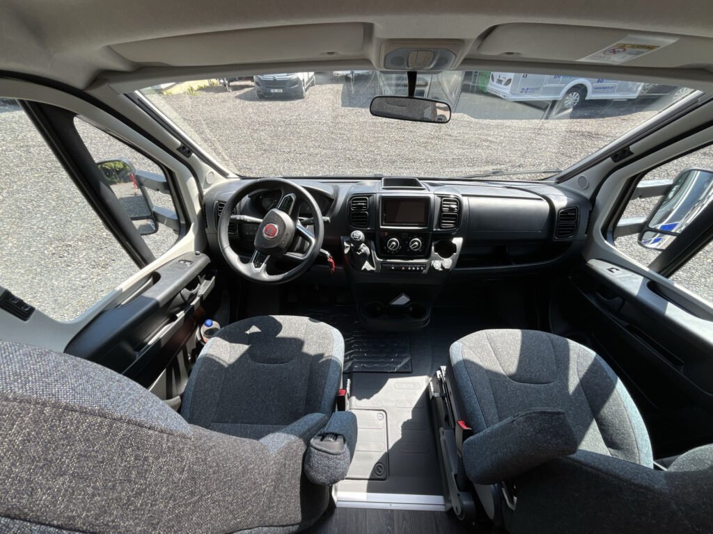 PŘÍPLATKOVÁ VÝBAVA V CENĚ VOZIDLA: levé garážové dveře, střešní okno nad kabinou řidiče, rámová okna Seitz S7, mlhovky, rezervní kolo, kožený volant, funkce „Traction+“, černé rámování světlometů, 2. klíč kabiny, nádrž nafty 90 l, černá mřížka chladiče, příprava couvací kamery, topení Truma Combi 6E Elektro, trouba, Isofix