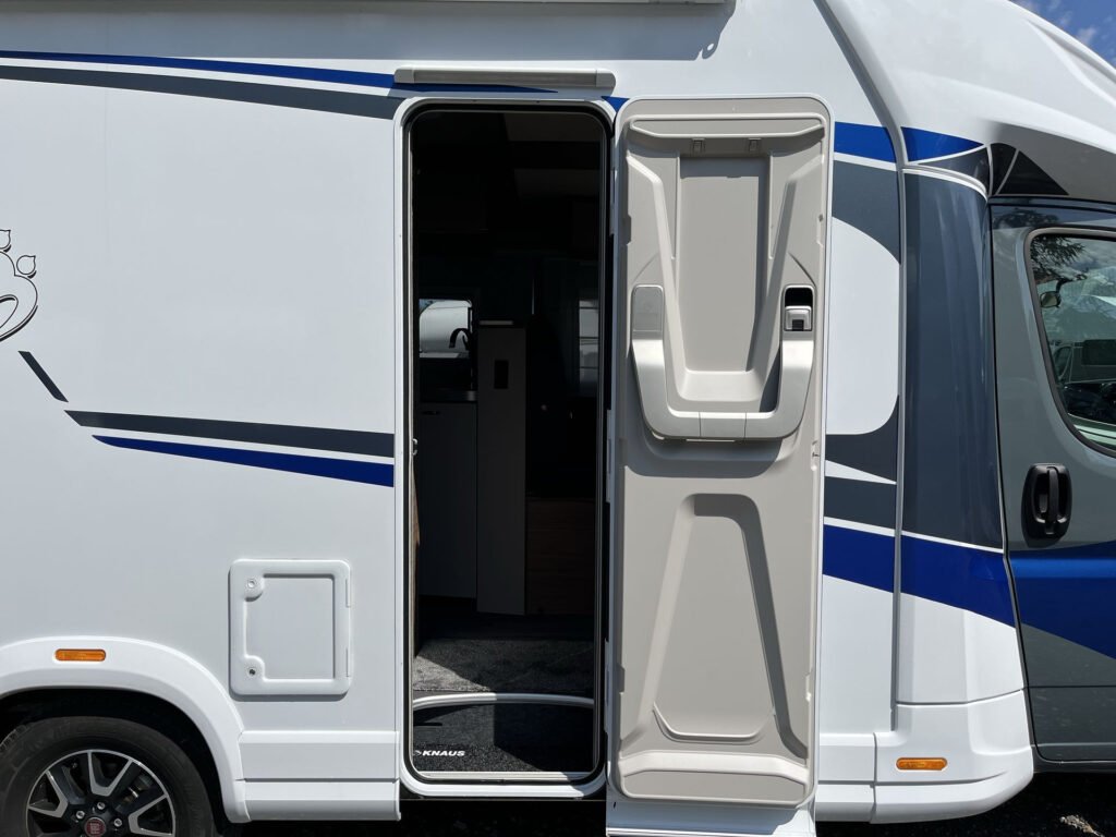 NÁSTAVBA: systém jednoho klíče, Knaus ServiceBox, servisní klapka vlevo, skříňka na plynové láhve (2 x 11 kg), pravé garážové dveře 80 x 110 cm, sklápěcí dvojitá tónovaná okna se záclonkami, moskytiérou a zatemňovací roletkou, 2x střešní okno s kombi-rollo 40 x 40 cm, střešní okno Mini-Heki 28 x 28 cm s moskytiérou (na toaletě), GFK střecha se zvýšenou odolností proti kroupám, vzhled zadní stěny FoldXpand se zapuštěným integrovaným nosičem zadních světel, stěny z hladkých hliníkových plátů