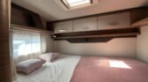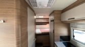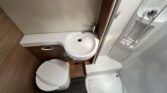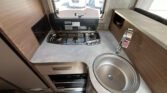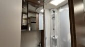 KUCHYŇKA + KOUPELNA: tříhořákový plynový vařič a nerezový dřez se skleněným krytem, kuchyňské zásuvky s funkcí soft-close, lednice 142 l se systémem AES, podélná prostorná koupelna se sprchovým koutem a umyvadlem, otočná kazetová toaleta Dometic