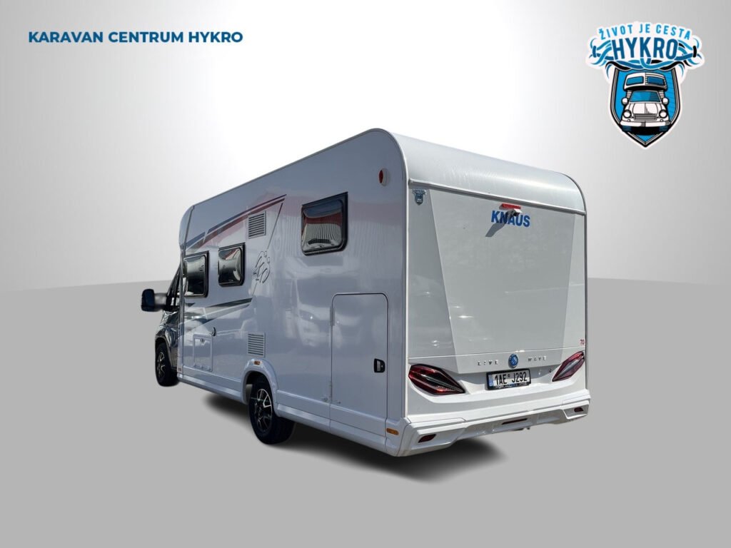 PŘÍPLATKOVÁ VÝBAVA V CENĚ VOZIDLA: motor 160 PS, kožený volant a řadící páka, funkce „TractionPlus“ včetně asistenta sjezdu z kopce, mlhovky s přisvěcováním do zatáček, rezervní kolo, nádrž nafty 90 l, extra klíč kabiny řidiče s dálkovým ovládáním, vstupní dveře Knaus Premium, levé garážové dveře, extra sklápěcí okno Midi-Heki 70×40 cm, sedací souprava ve tvaru „L“ se zvedacím stolkem s teleskopickou nohou, výsuvný rošt mezi zadními lůžky, dřevěný rošt ve sprše, bojler Truma Combi 6E, elektrické podlahové topení