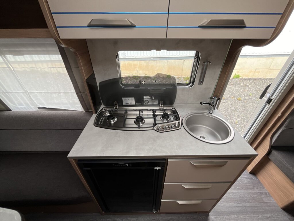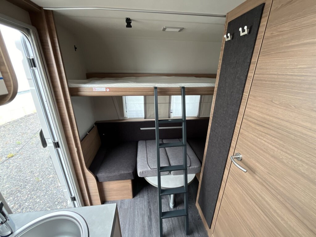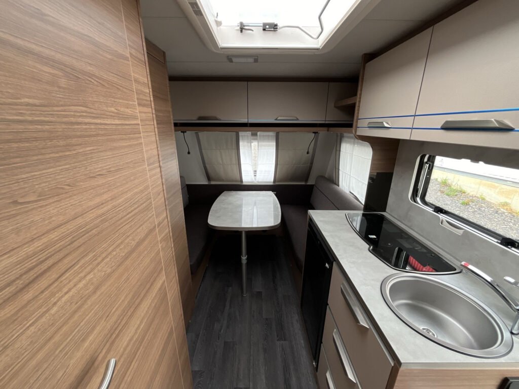 PLUS PAKET: přední střešní okno 96×65 cm s kombinovanou roletkou, moskytiéra vstupních dveří, AL-KO zesílené stabilizační nožičky, pojezdové kolečko s ukazatelem svislého zatížení, samonastavitelná brzda KNOTT.ANS