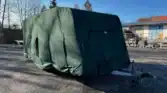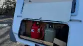 Skladován venku, ale pod plachtou, pravidelně jsme jej posouvali kvůli pneu. V několika chorvatských bouřích ověřeno, že do něj neteče a za to ručím. A co má a co umí?