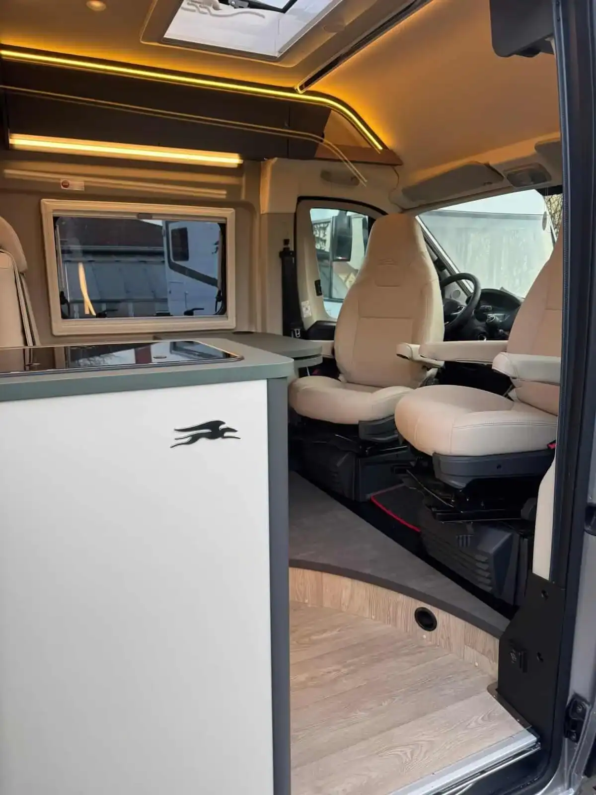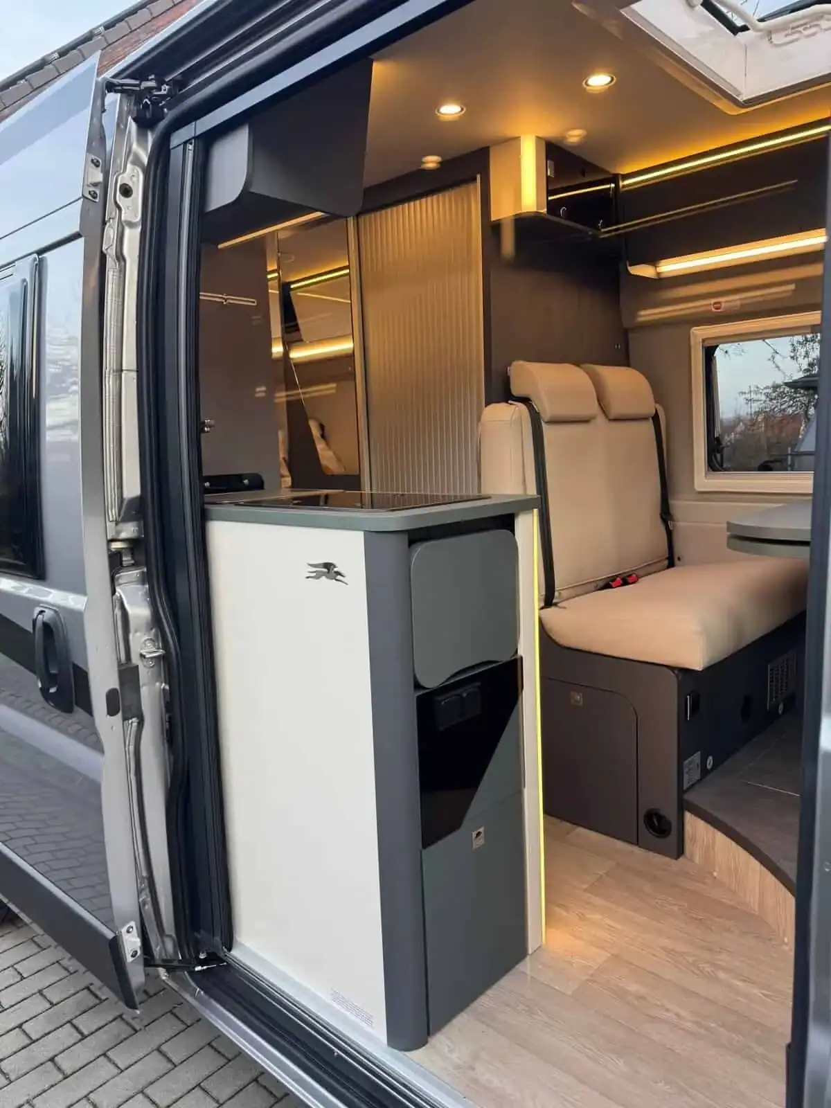 Moderní kuchyňka s lednicí a plnohodnotná koupelna s oddělenou sprchou vám zajistí komfort, který opravdu oceníte – ať už parkujete na pobřeží, v horské vesnici nebo v centru evropské metropole.