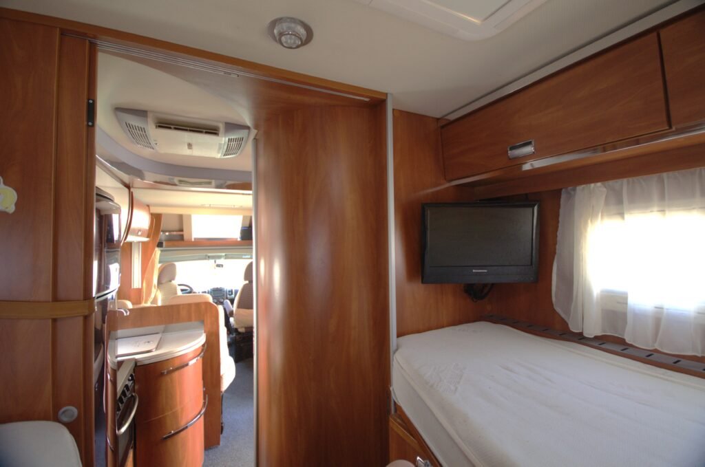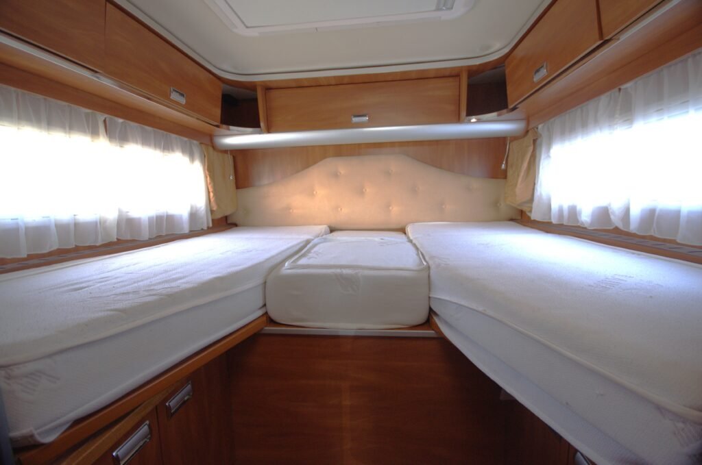 Velké pevné lůžko v zadní části vozu.