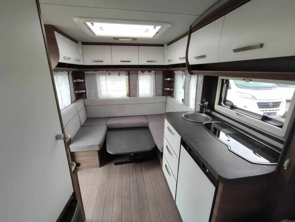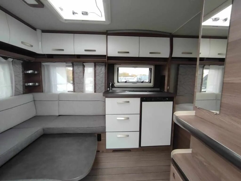 Karavan je vybaven praktickou kuchyňkou s lednicí a koupelnou s toaletou. Součástí výbavy je také Plus paket, který zahrnuje:
