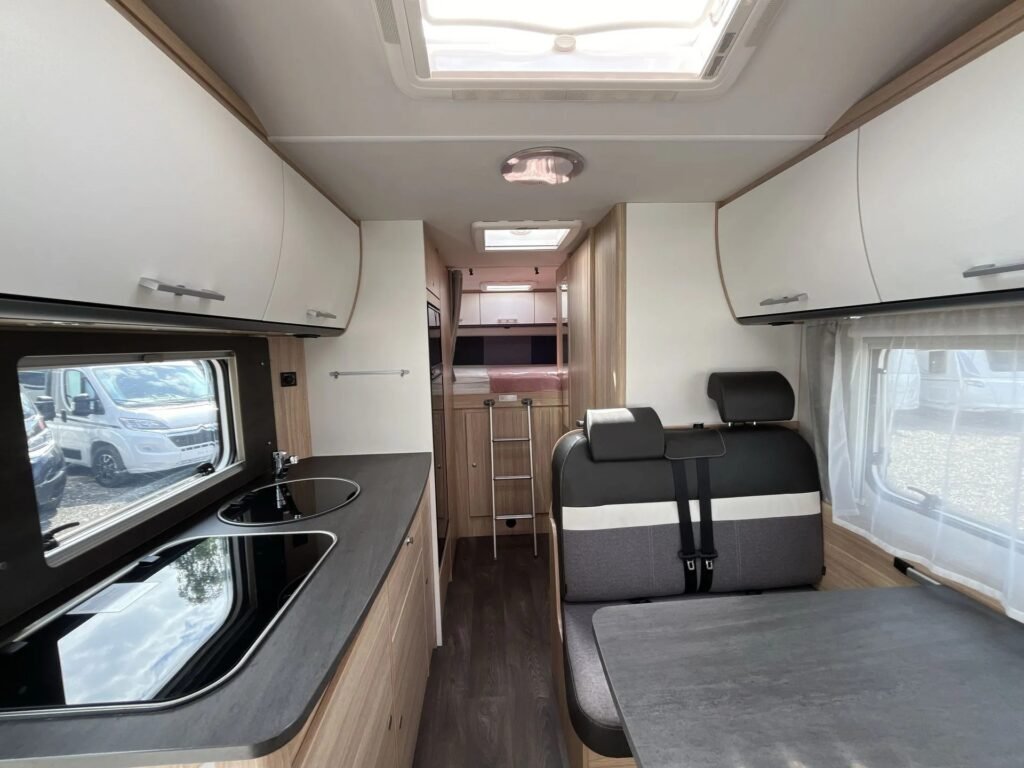Basic-Paket: elektricky ovládaná a vyhřívaná zrcátka, příprava pro rádio vč. reproduktorů a integrované antény v zrcátku, výškově stavitelná sedadla spolujezdce, panoramatické střešní okno nad kuchyňkou, střešní okno 40 x 40 cm, zrcadlo s podsvícením a držáčky na ručníky, přední sedačky Captain-Chair s loketními opěrkami, vybavení sprchy, extra zásuvka v garáži a u horních skříněk kuchyňky