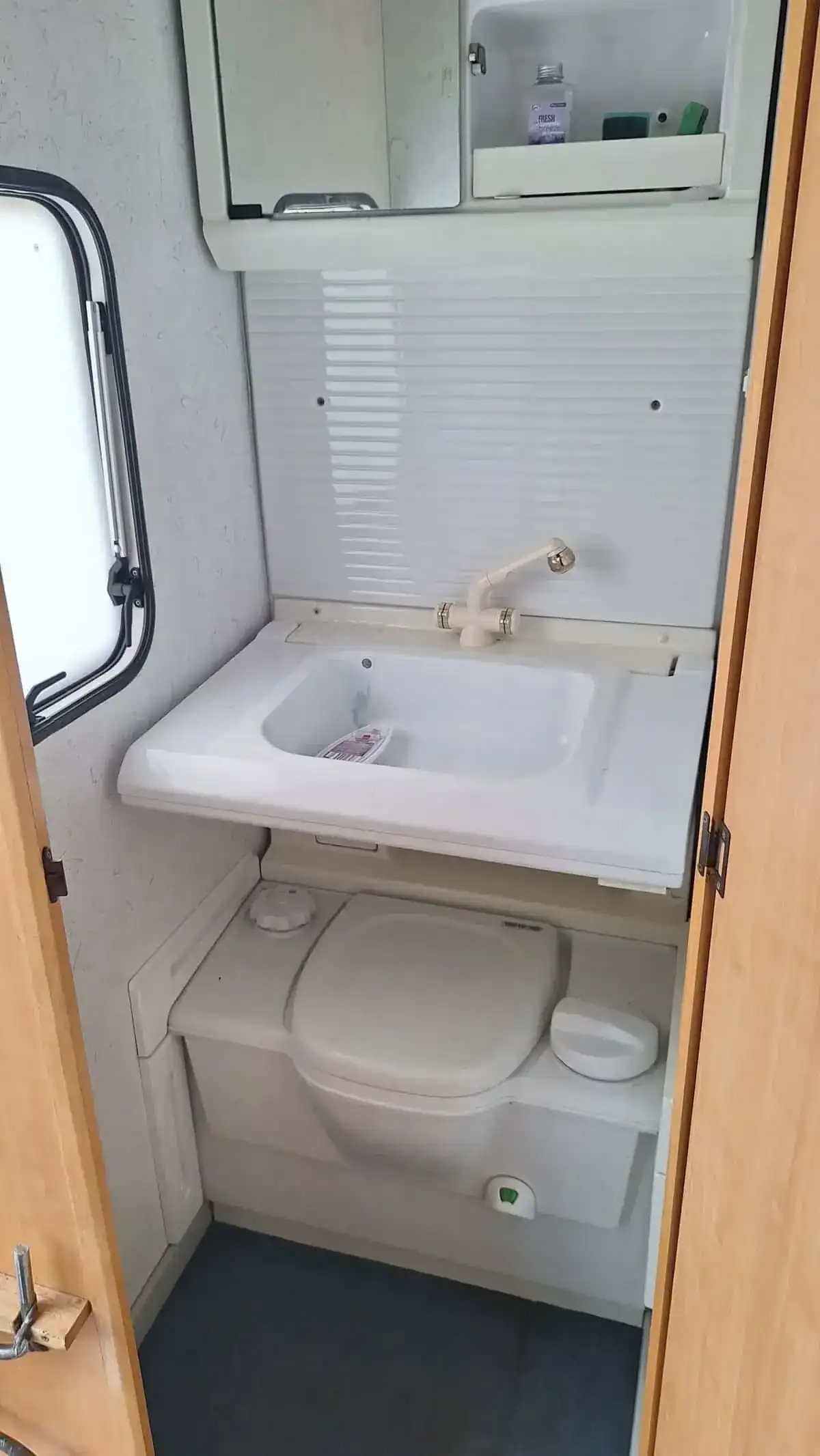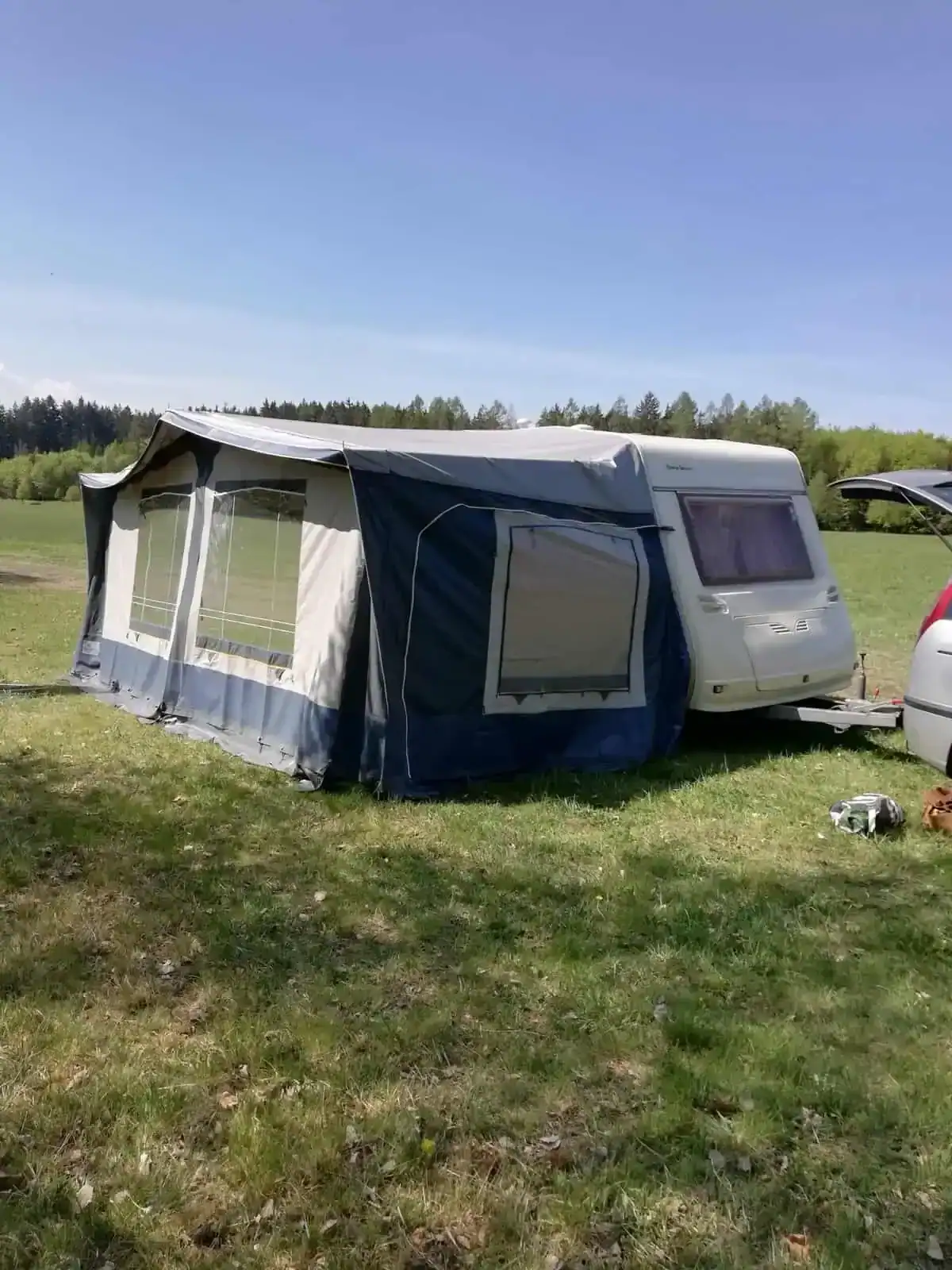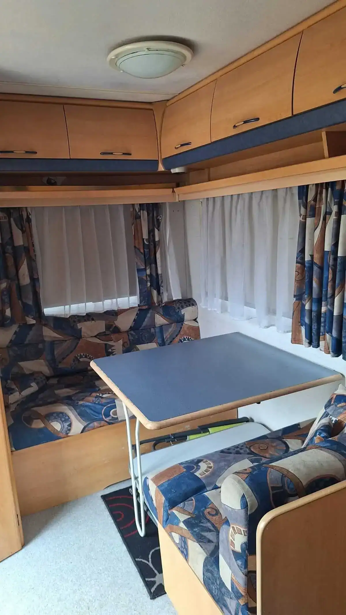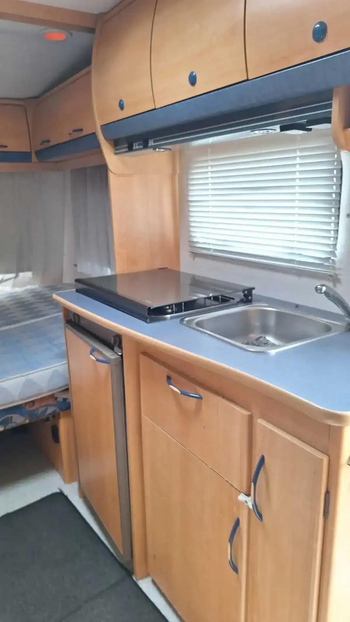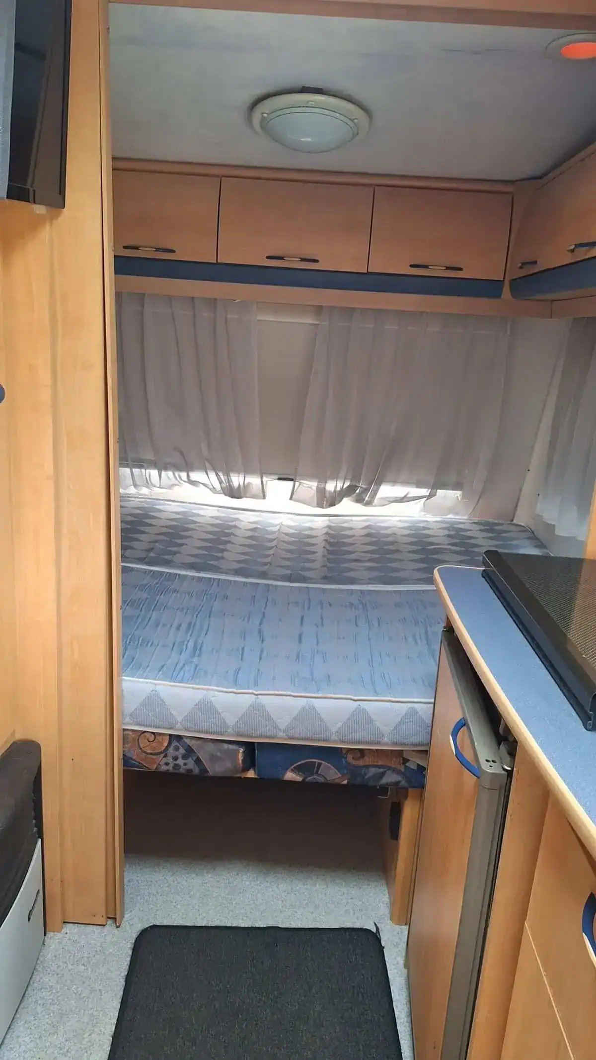 V přední části přívěsu je umístěno sezení rozložené na dvoulůžko 150 x 195 cm s přidanou matrací. Tato část je plně uzavíratelná pevnými posuvnými dveřmi. Ve střední části karavanu se nachází kuchyňská linka, která je vybavena elektrickou lednicí,…