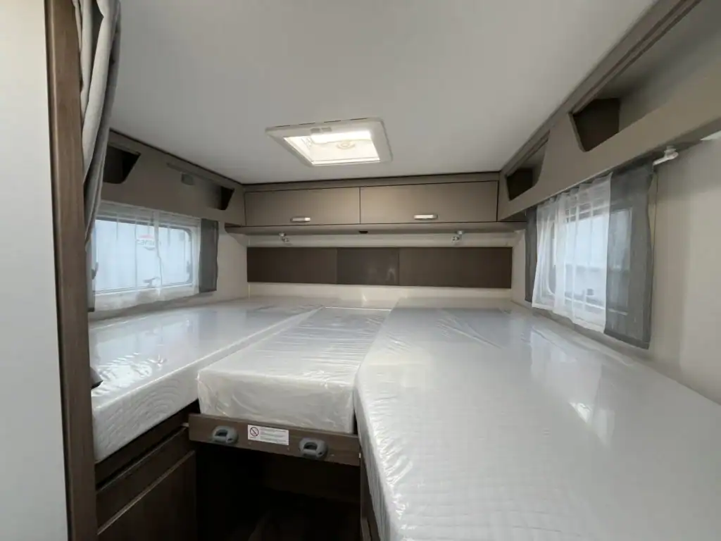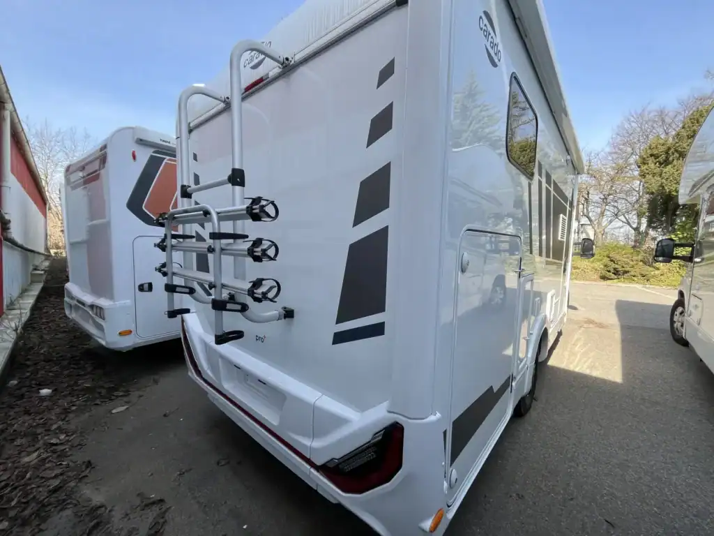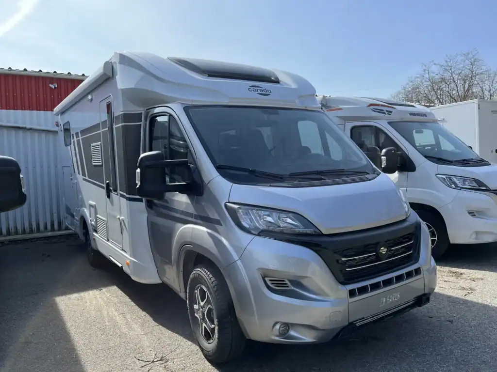 Rodinný polointegrovaný obytný vůz Carado T 338 na podvozku Fiat Ducato s automatickou převodovkou. Ideální pro 4 osoby na jízdu i spaní v oblíbeném půdorysu s velkým komfortem.