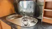 Tento rodinný karavan s palandami nabízí chytrý půdorys se třemi oddělenými zónami: