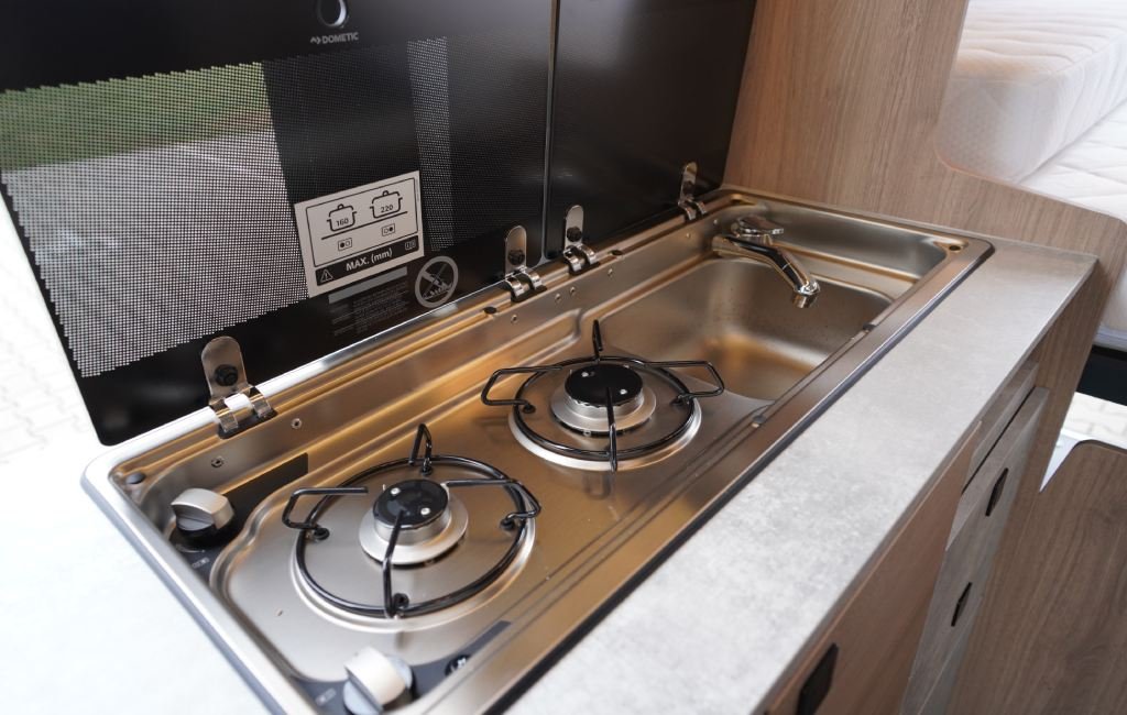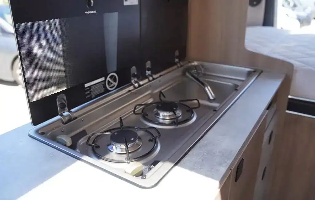 Plynový sporák se 2 hořáky, skleněným víkem a piezoelektrickým zapalováním