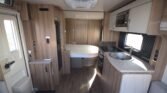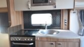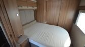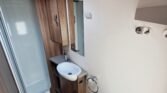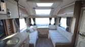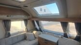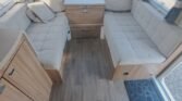 Britský karavan Swift Sprite Cruzer 550 SR nabízí komfortní dispozici vhodnou pro páry i rodiny. Dominantou interiéru je manželské lůžko umístěné ve střední části karavanu, které poskytuje pohodlné spaní bez nutnosti každodenního rozkládání. V zadní části se nachází prostorná koupelna přes celou šířku karavanu se sprchovým koutem, chemickou toaletou a samostatným umyvadlem. Díky tomu nabízí Cruzer 550 SR velmi praktické a pohodlné zázemí pro cestování i delší pobyty.