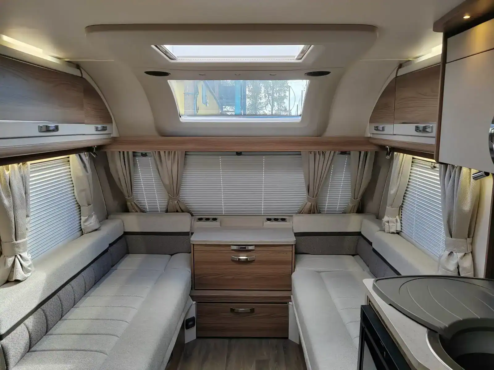 Rozměry karavanu: šířka 245cm, výška 261cm, celková délka 754cm, obytná délka 575cm