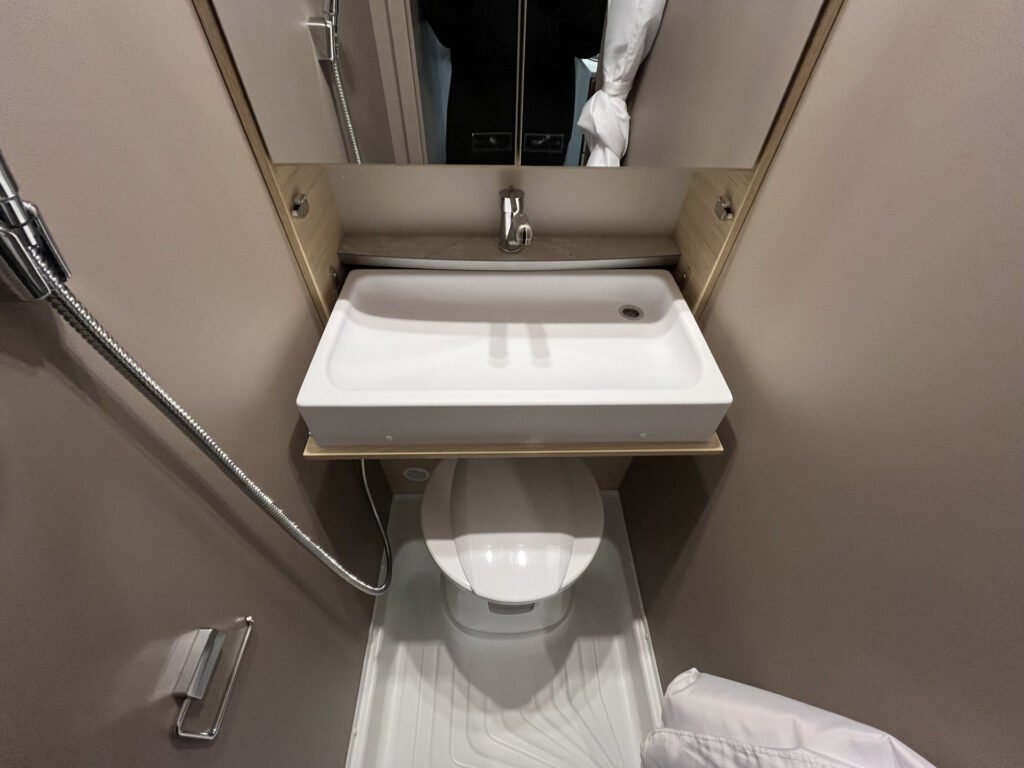 Duschausbau Paket: bojler Truma Therme s připojením do kuchyňky a koupelny (230V), mobilní odpadní nádrž 25 l, vybavení sprchy, sprchová vanička