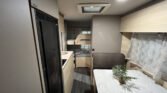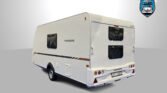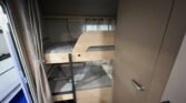 Elektrický rodinný přívěs s příčným lůžkem a palandami.
