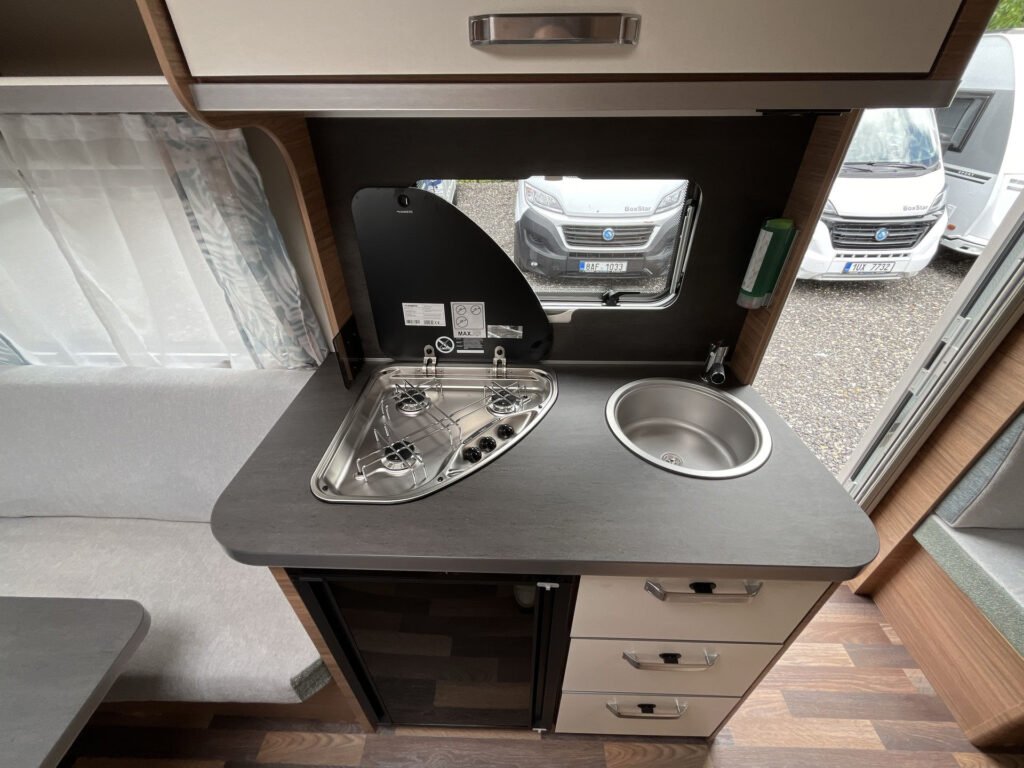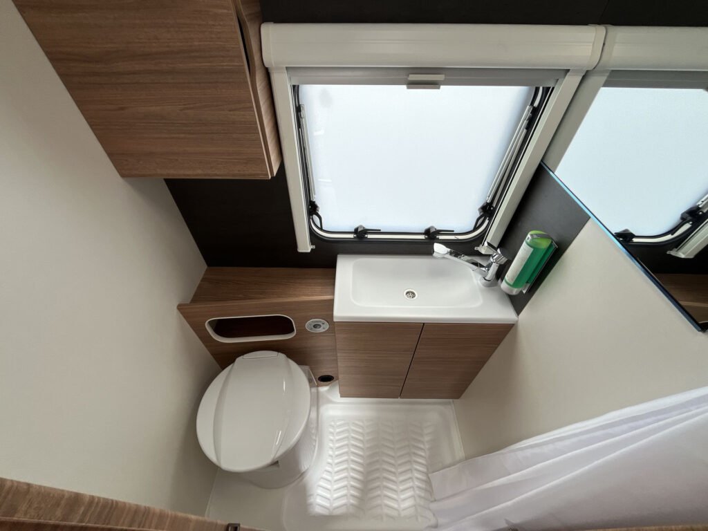 Advanced paket: mobilní odpadní nádrž 25 l, střešní okno 70 x 50 cm s kombi roletkou, dveřní moskytiéra, bojler Truma Therme, plně vybavený sprchový kout