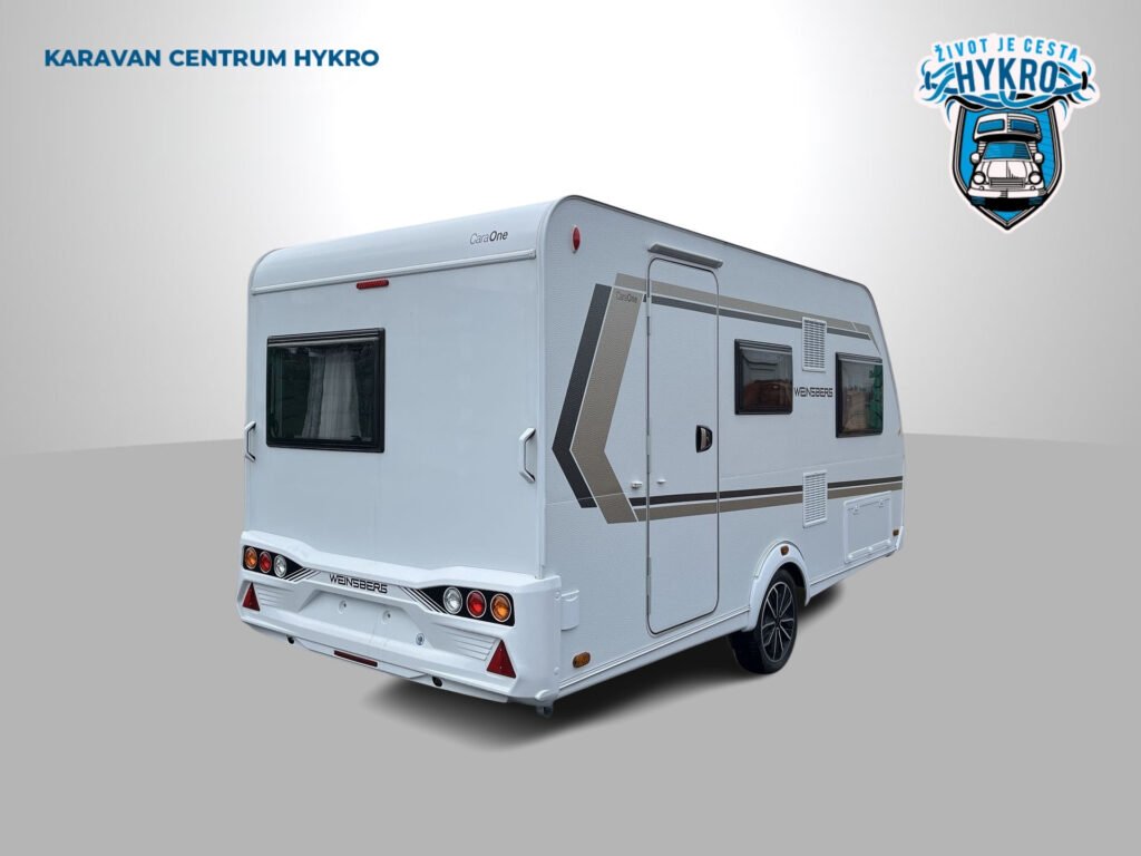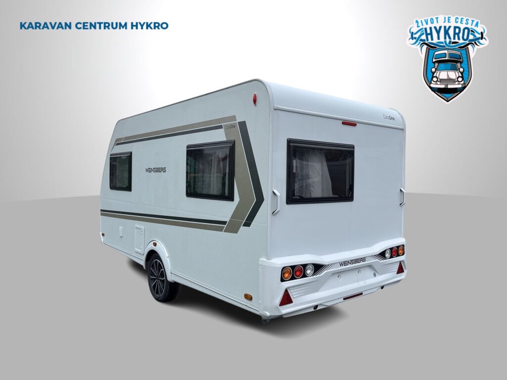 Obytný přívěs Weinsberg 420 QD s celkovou hmotností 1 200 kg skladem. Polstrování STONE WATER.