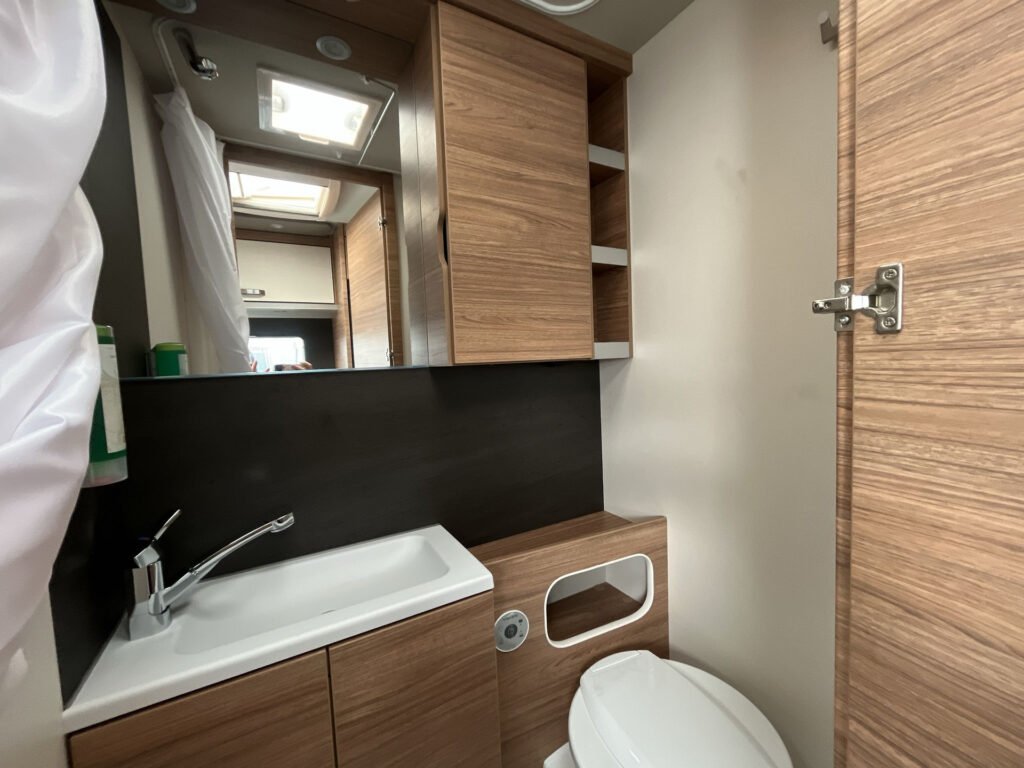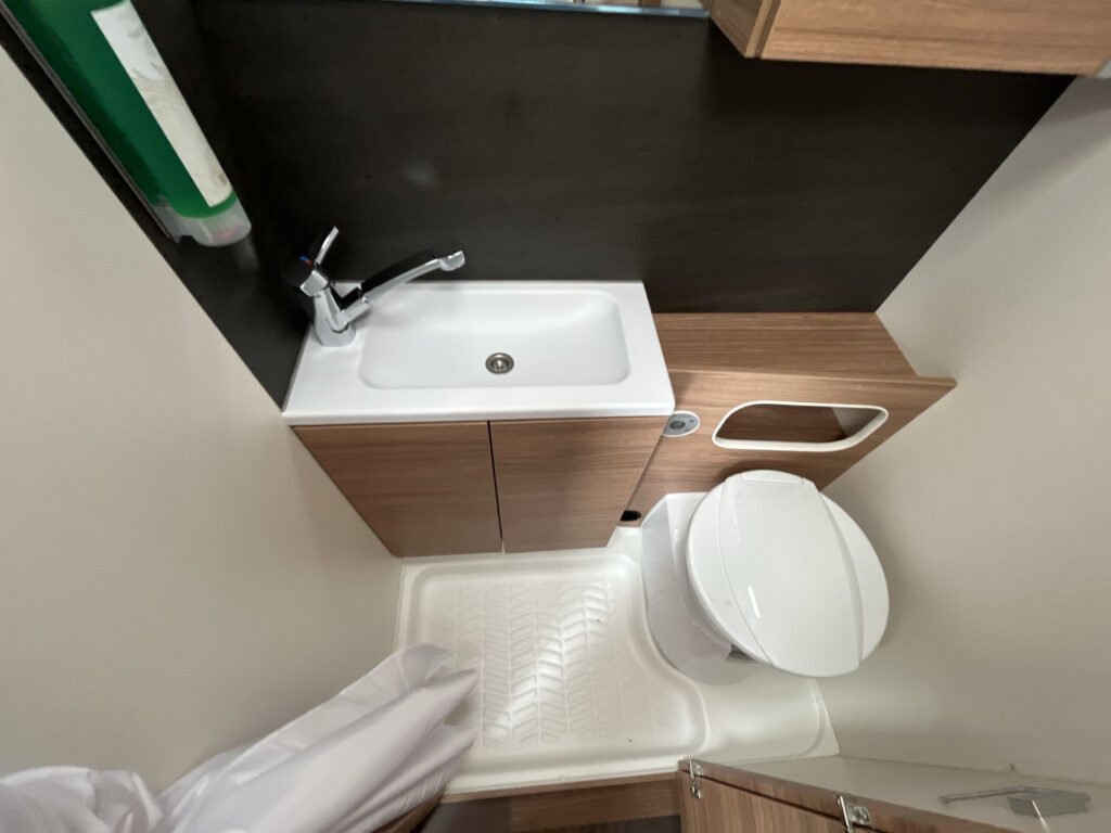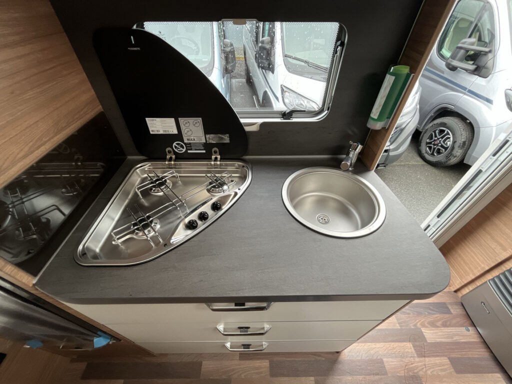 ADVANCED PAKET: mobilní odpadní nádrž 25 l, střešní okno Midi Heki, moskytiéra ve vstupních dveřích, vybavení sprchy, ohřev vody Truma Therme.