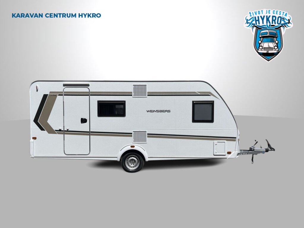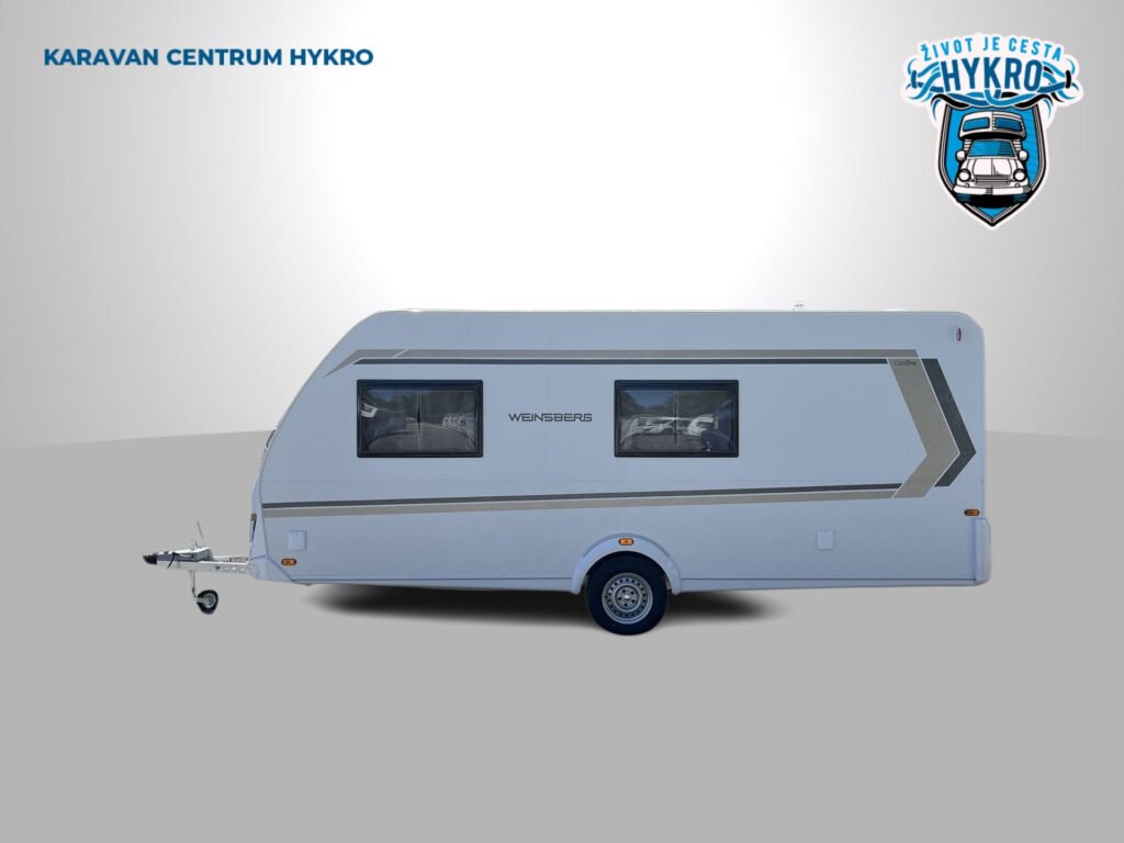 Rodinný karavan Weinsberg CaraOne 500 FDK s francouzským lůžkem a palandami skladem. Celková hmotnost 1 350 kg.