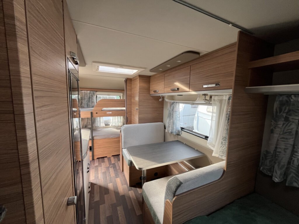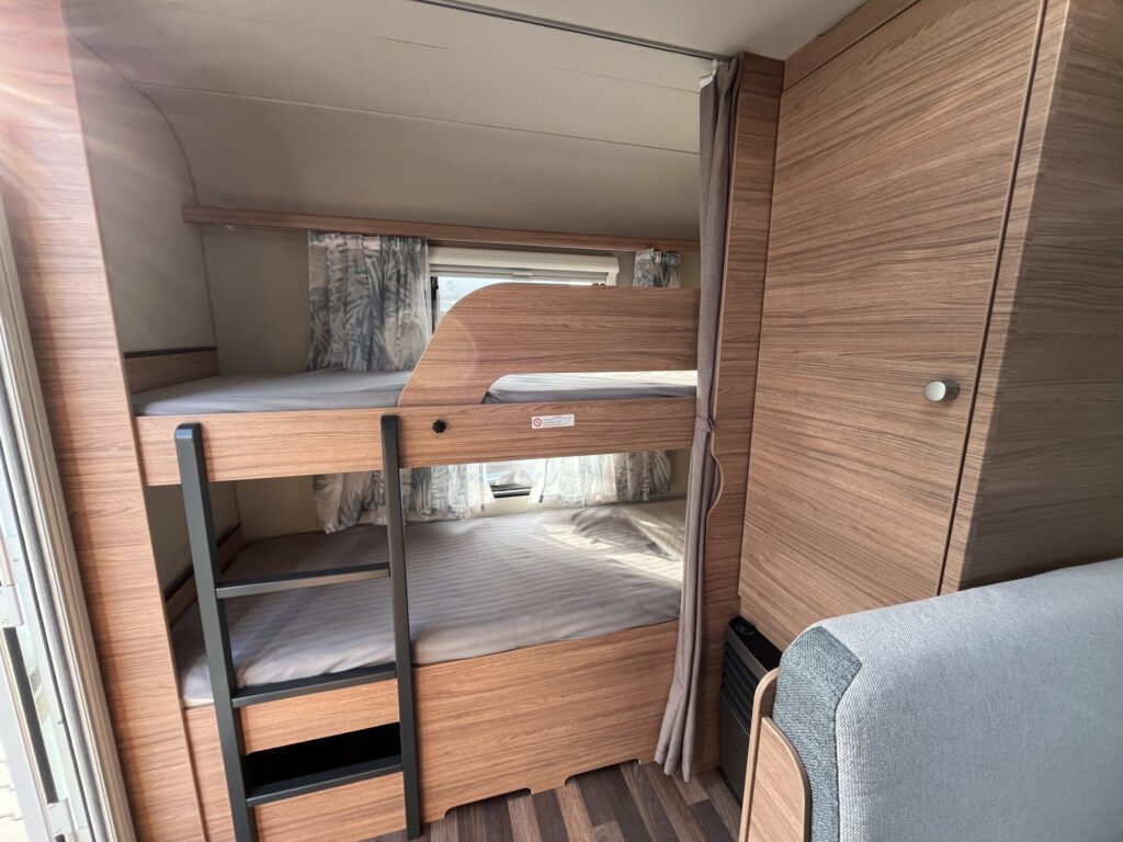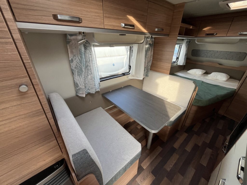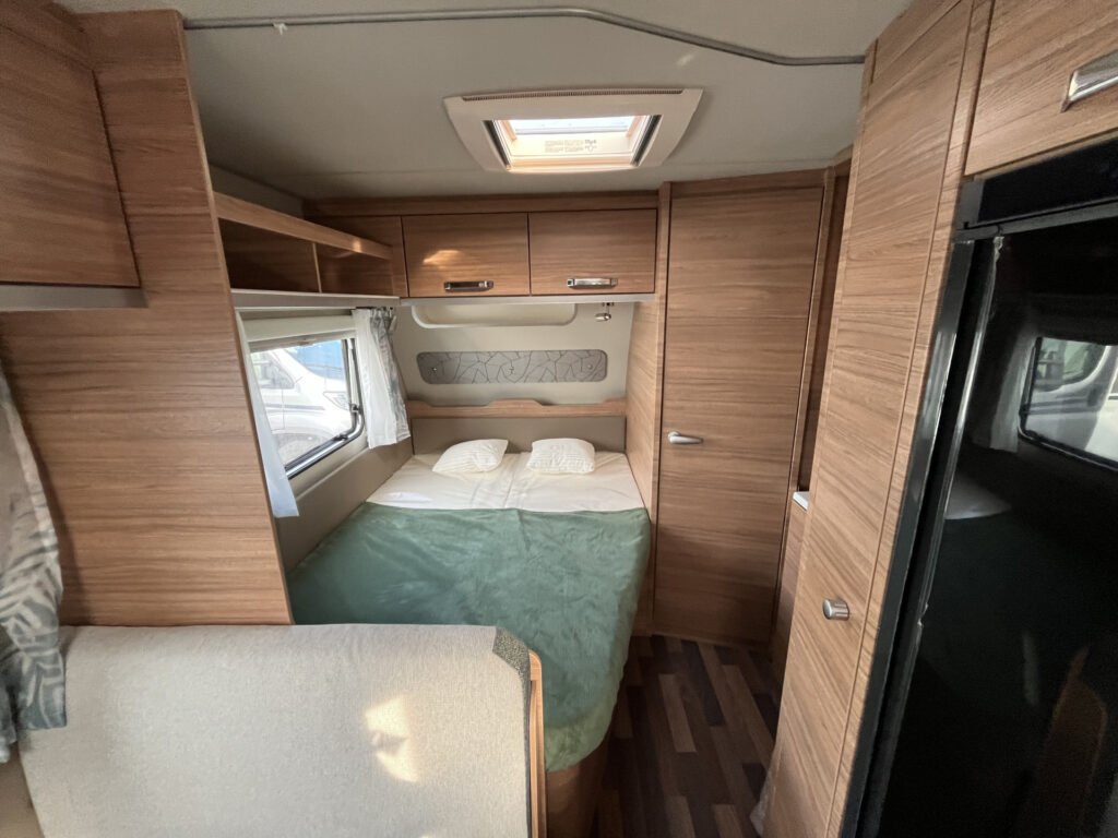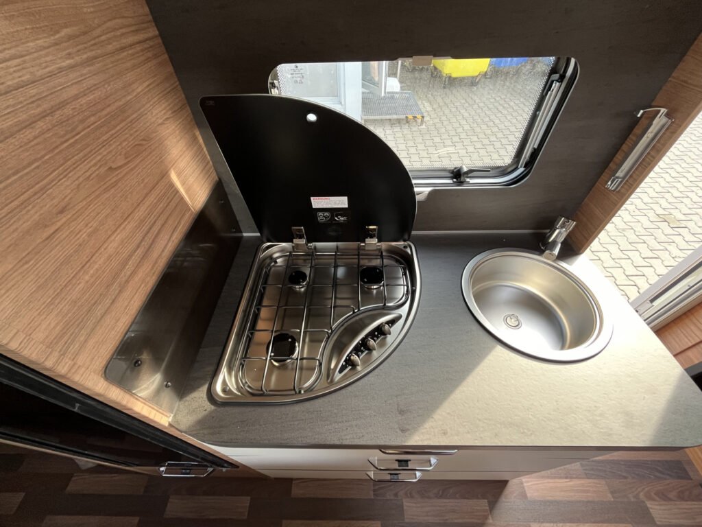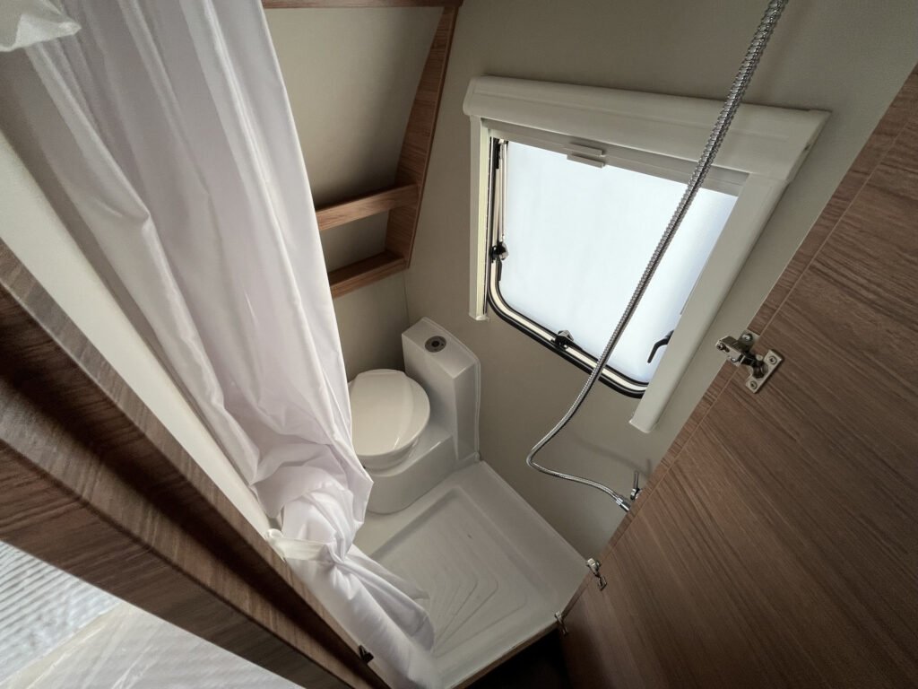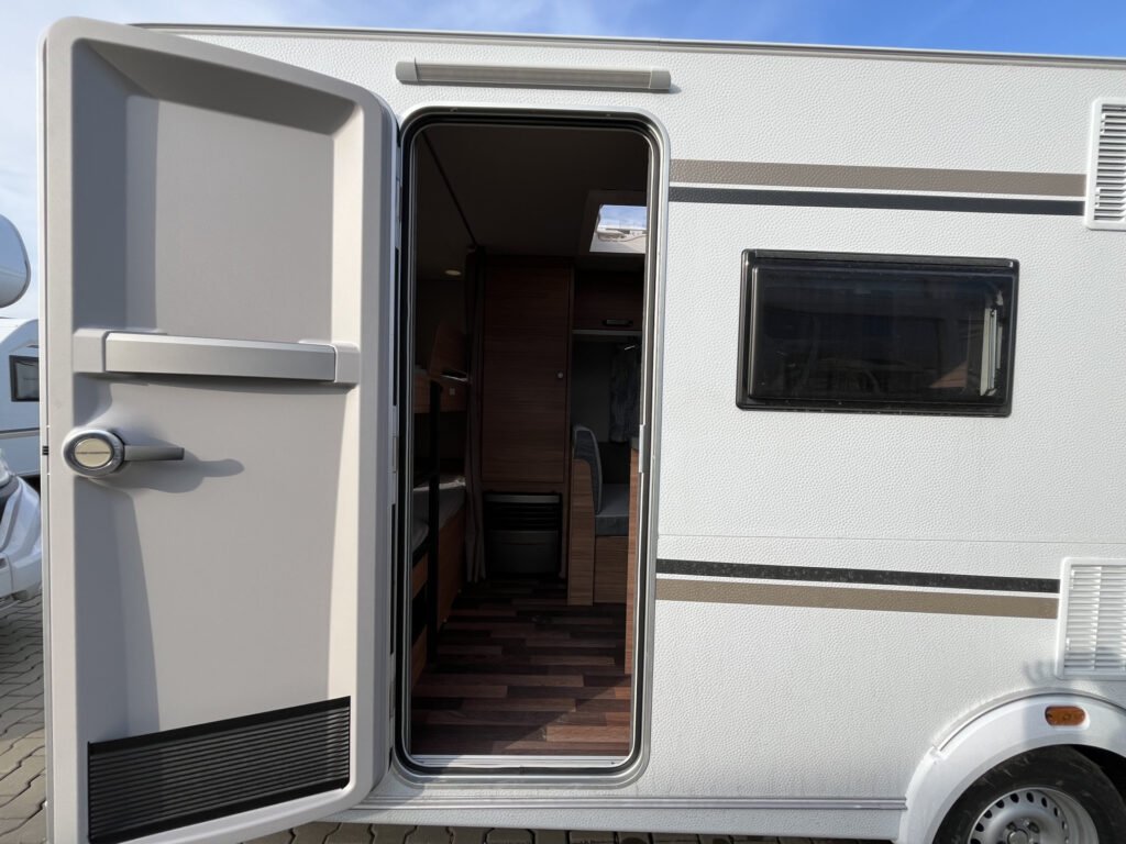 Advanced paket: mobilní odpadní nádrž 25 l, střešní okno Midi Heki 70×50 cm, moskytiéra ve vstupních dveřích, vybavení sprchy, bojler Truma Therme (230 V)