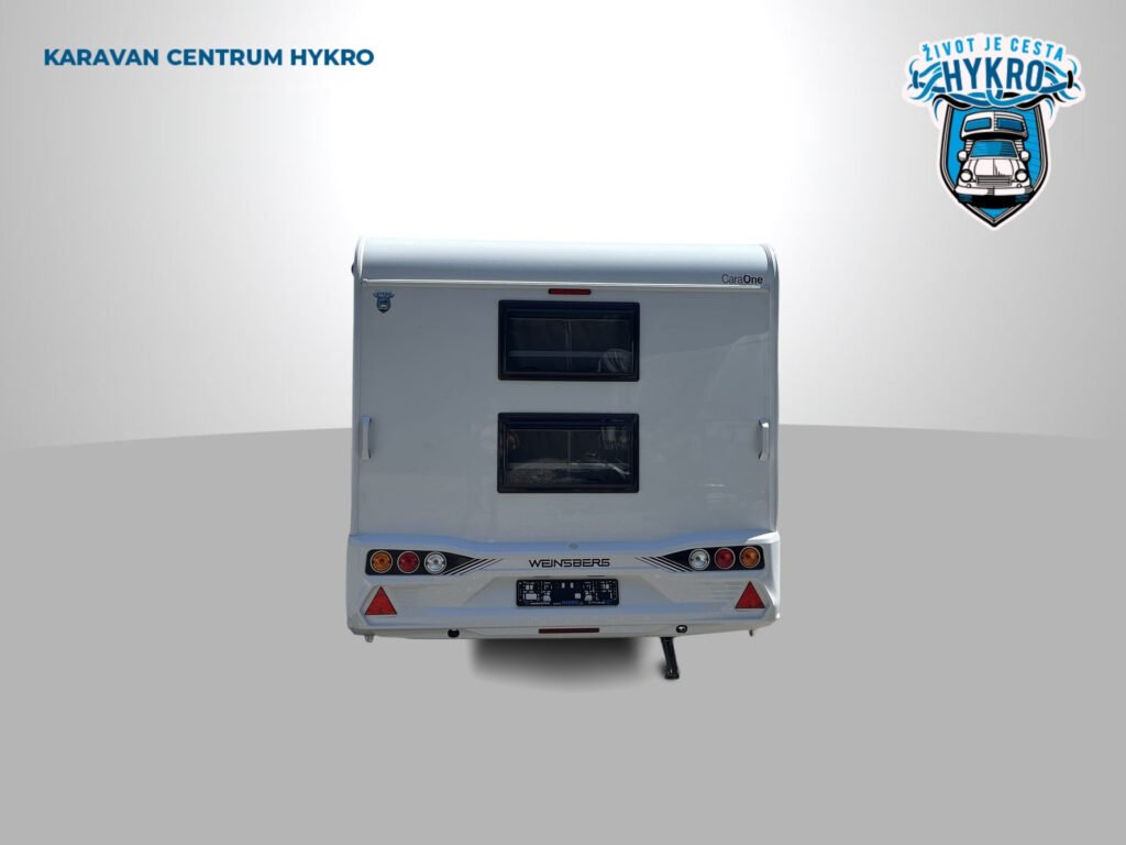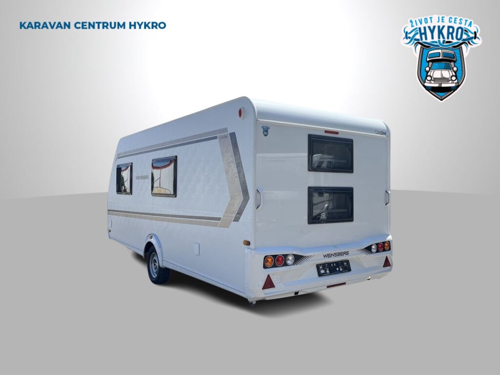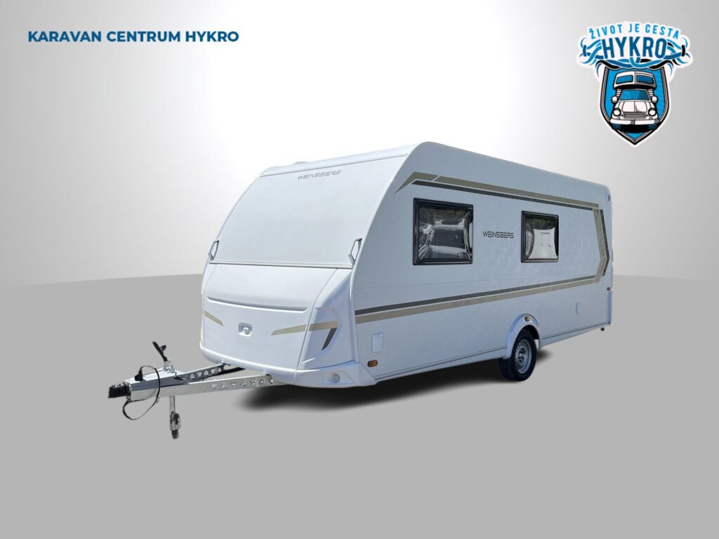 Rodinný karavan Weinsberg CaraOne 500 FDK s francouzským lůžkem a palandami skladem. Celková hmotnost 1 350 kg.